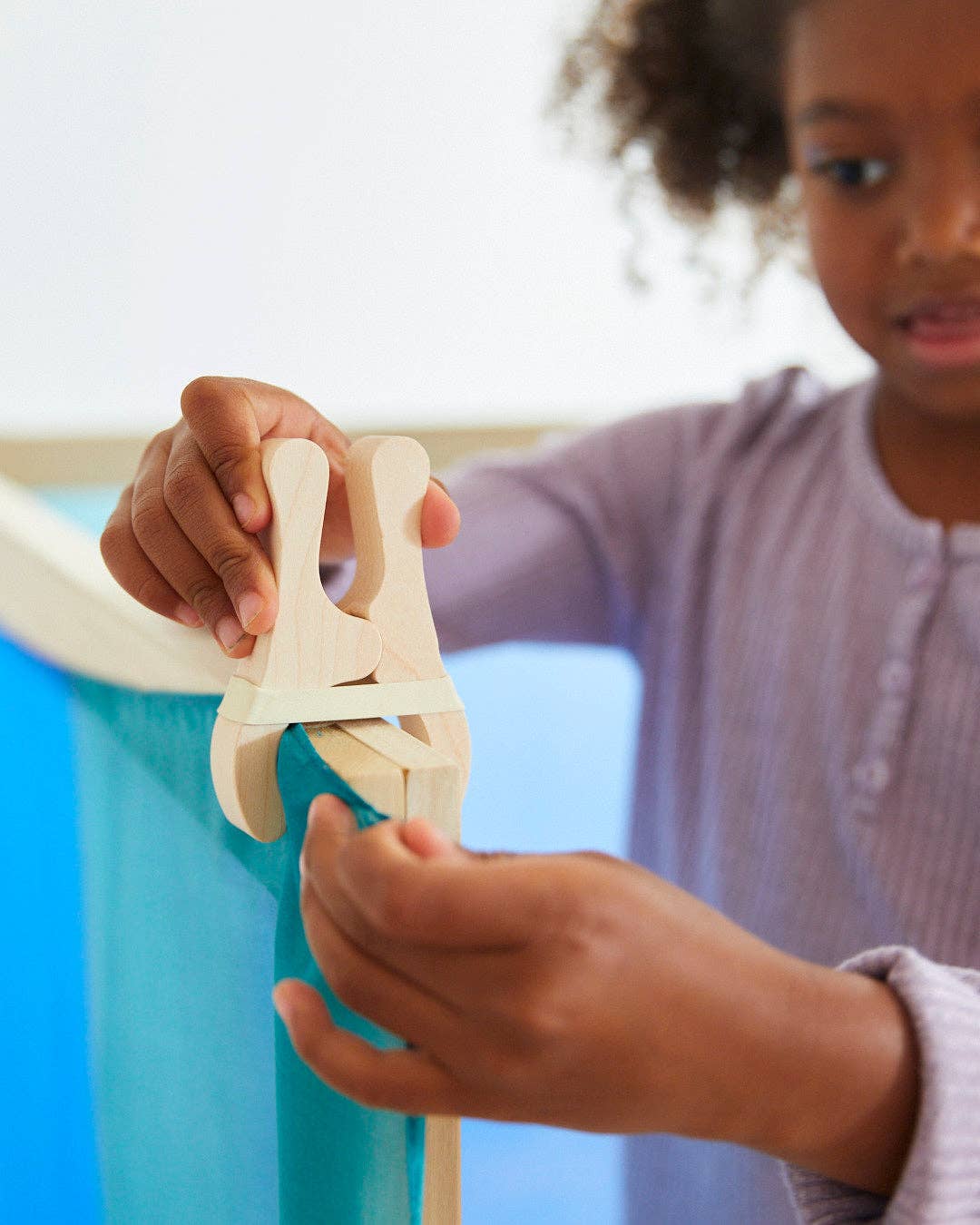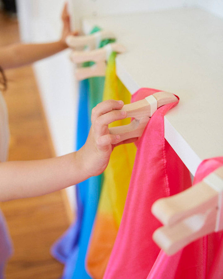 Children will use Playclips to clip Playsilks and sheets, firmly together and onto imaginative play scenes. Playclips are approximately 3.5 inches tall