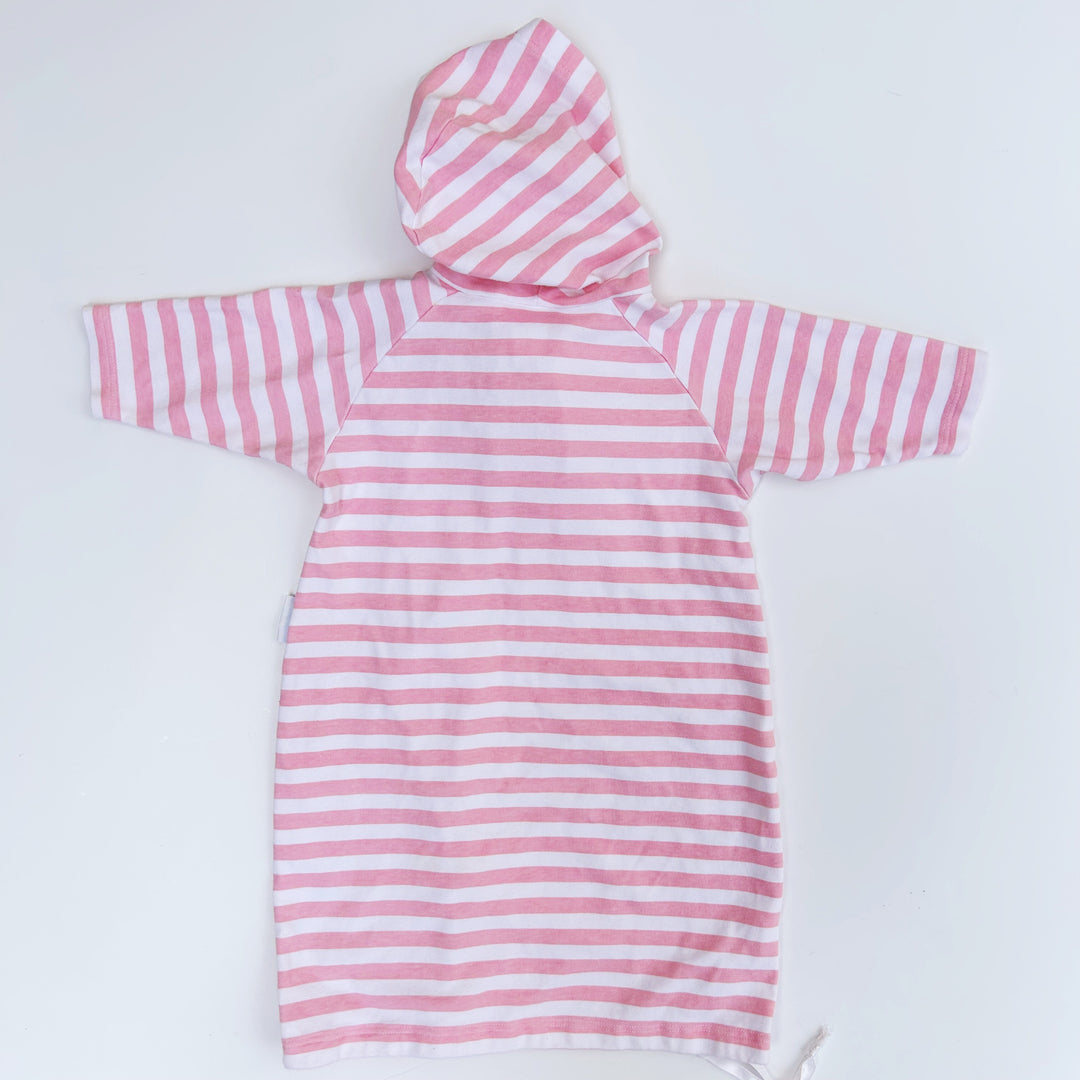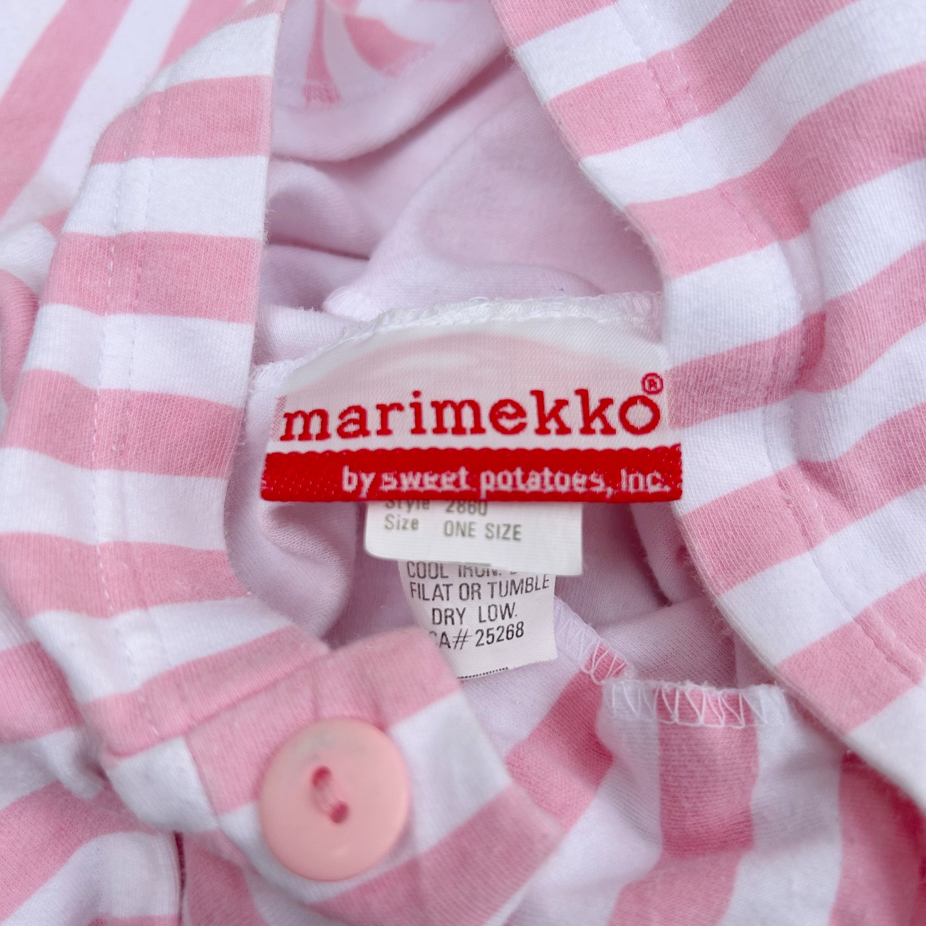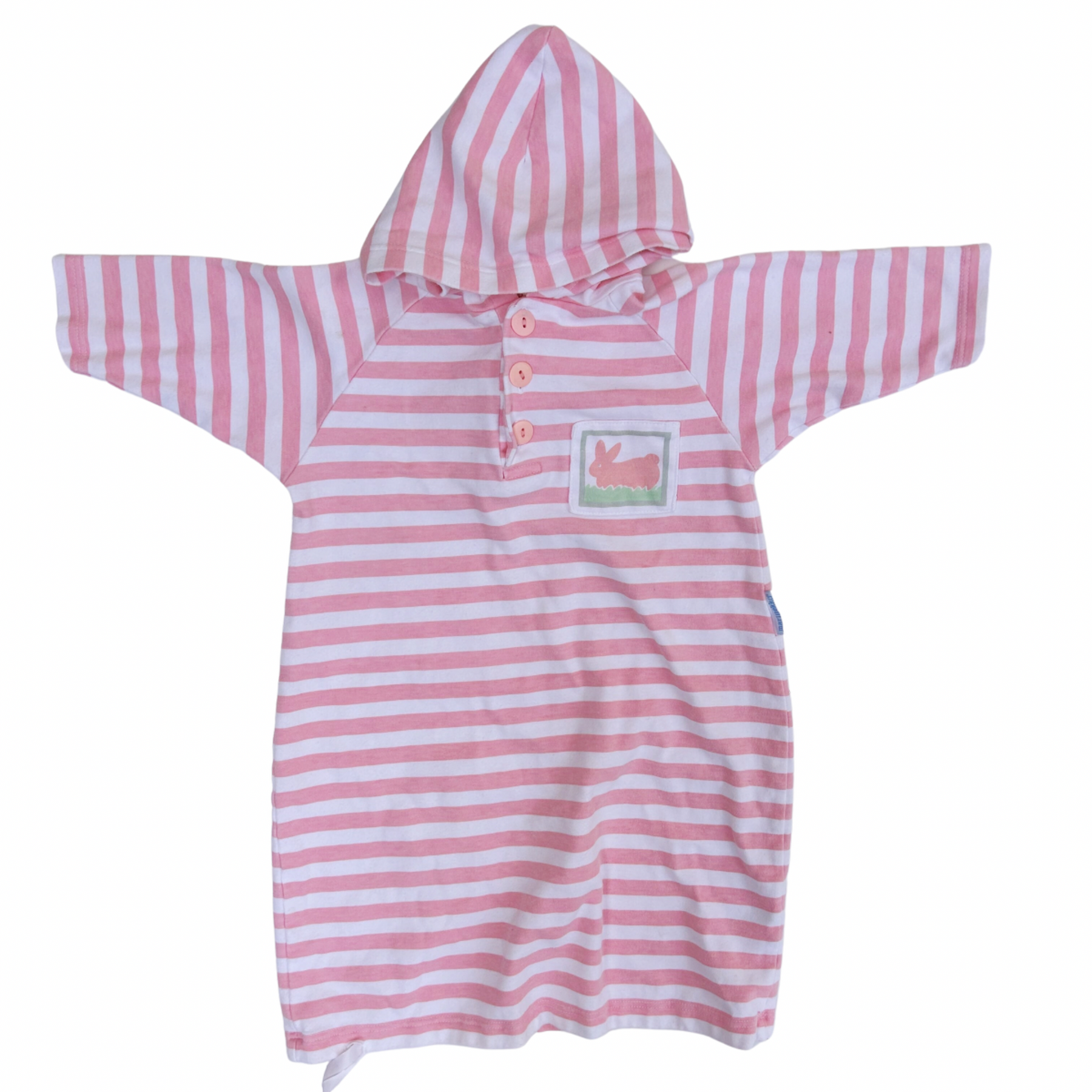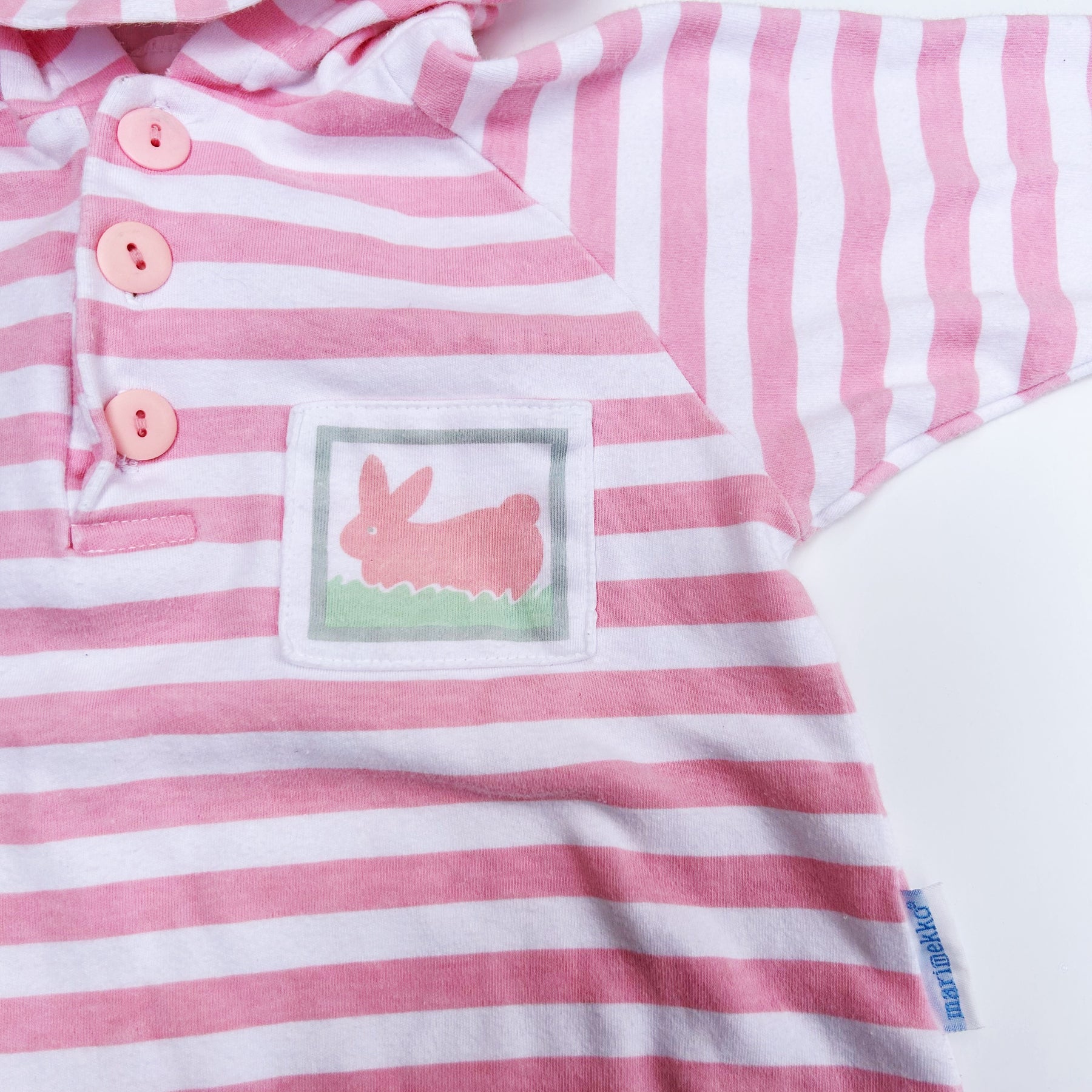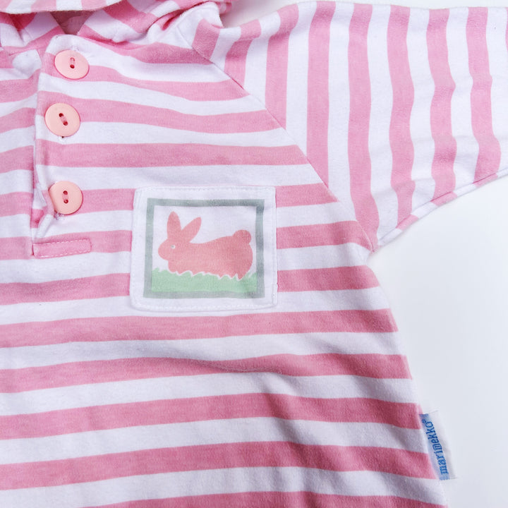 Marimekko by Sweet Potatoes pink and white stripe hooded bunting with drawstring bottom and bunny patch on front. Good used condition with some wash wear. One size (measures 21" length, 11.5" pit-to-pit).