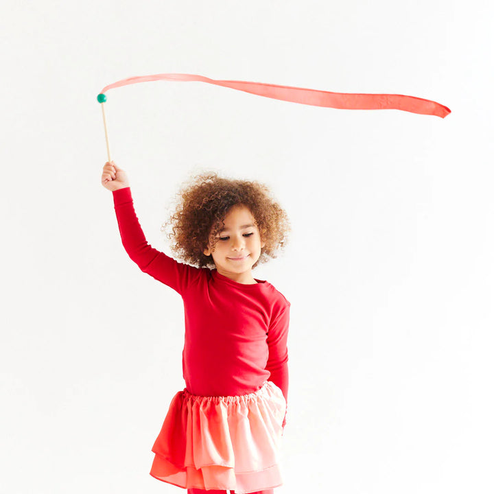 Perfectly sized for small hands, this mini strawberry streamer features a soft silk ribbon attached to a sturdy wooden wand. Ideal for waving, twirling, and adding a touch of movement to imaginative play. A playful way to spark creativity and joy!