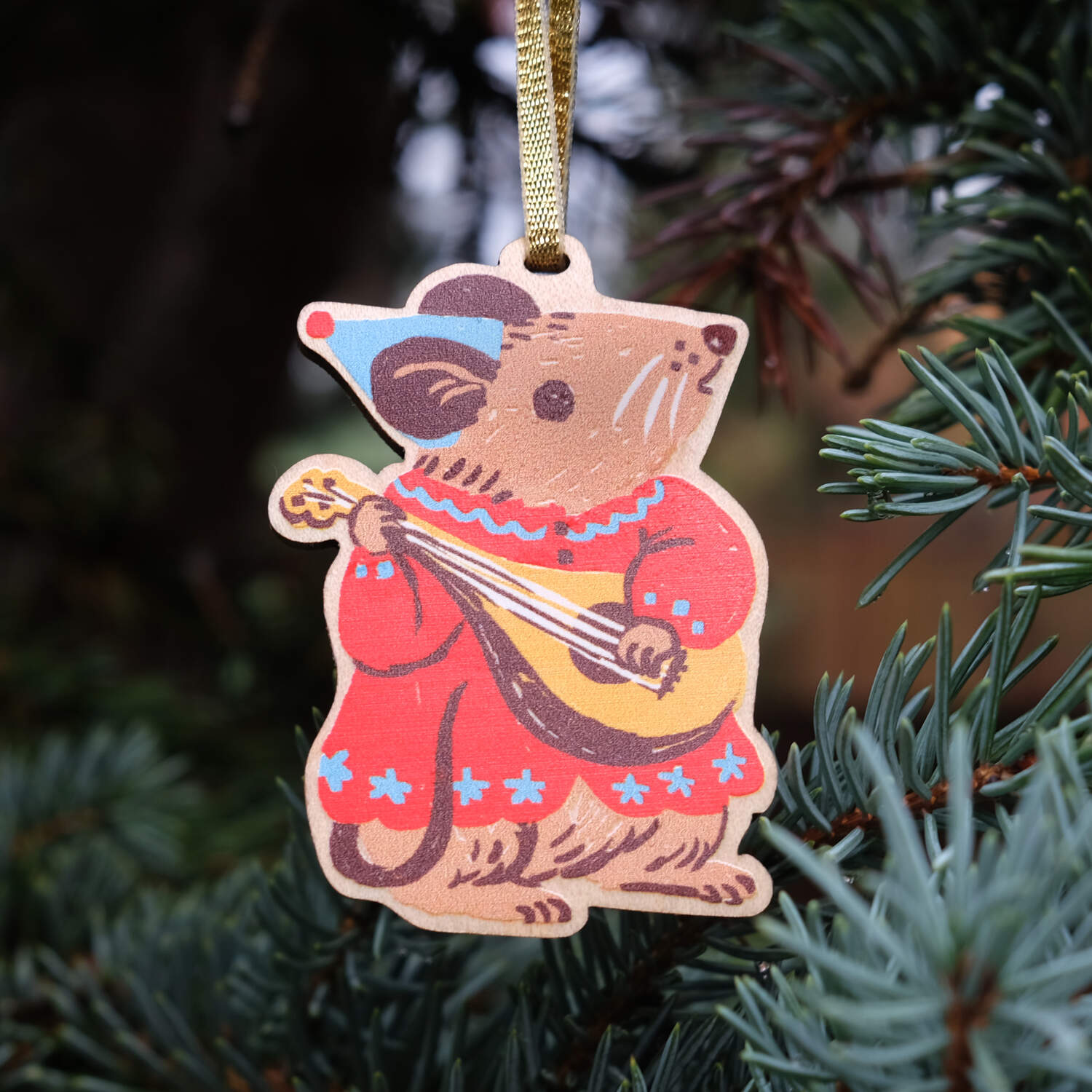 This sweet little mouse is ready to bring some music to the holiday festivities with his band of forest friends.