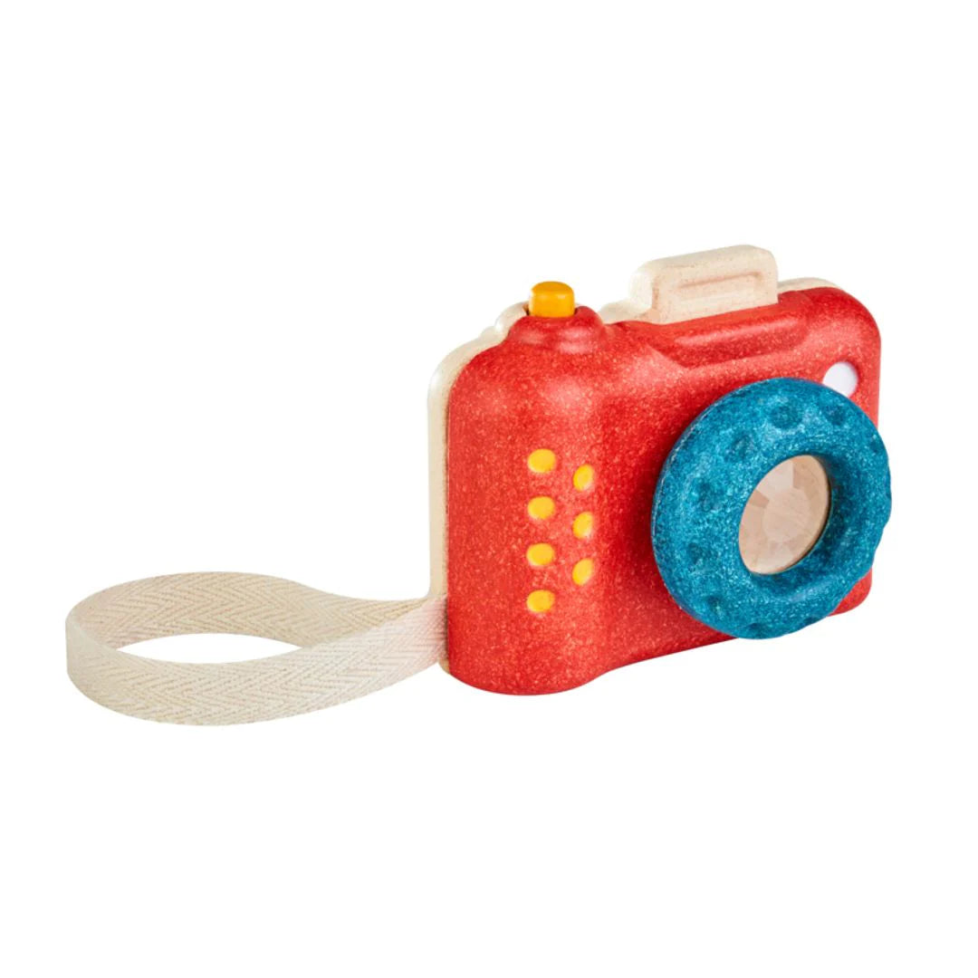 Get picture perfect views of your surroundings with this PlanToys camera. Point, focus, and click the camera and see the different images through the kaleidoscope lens!