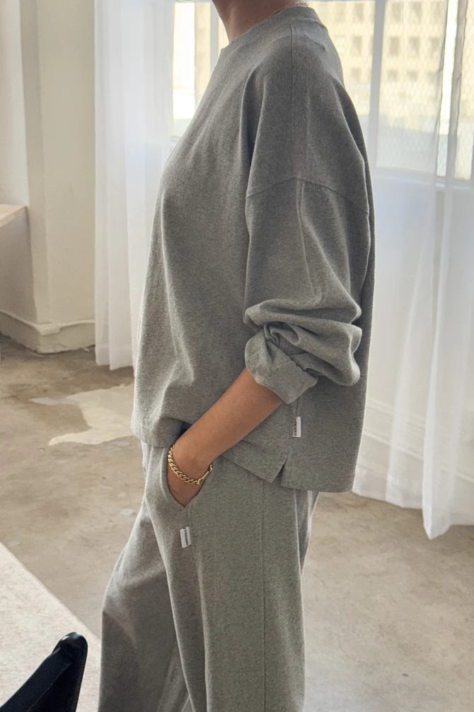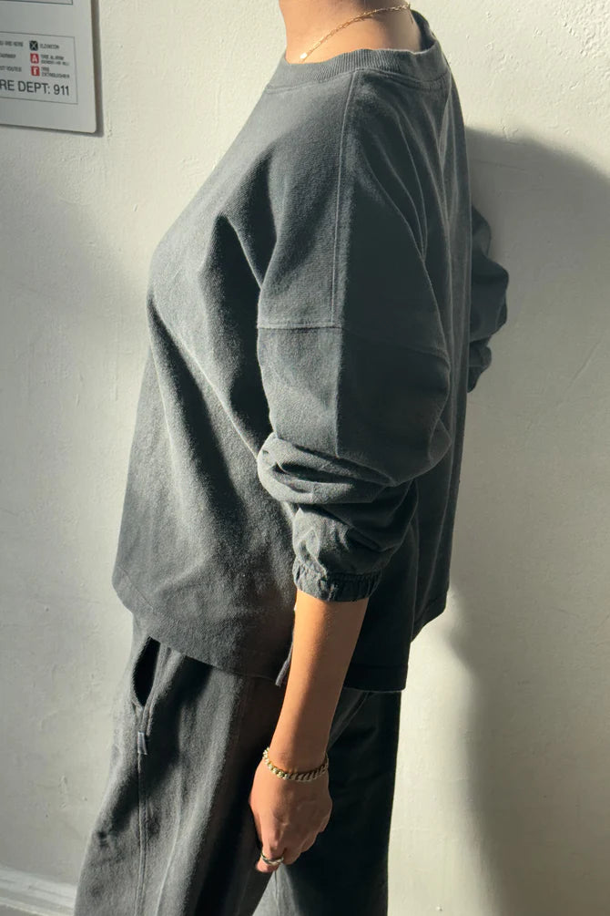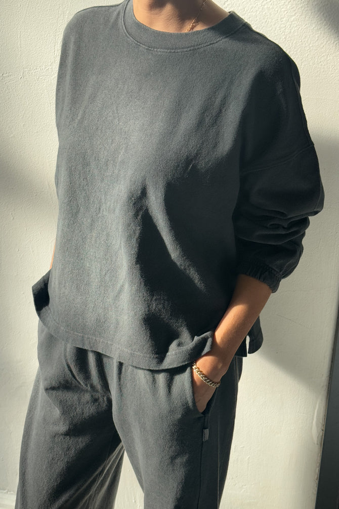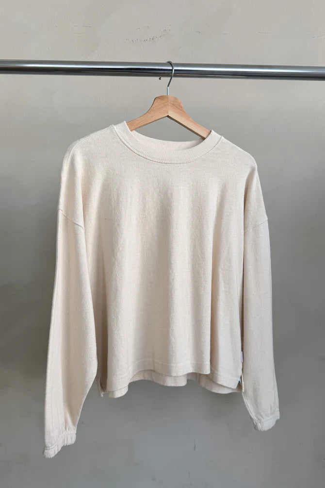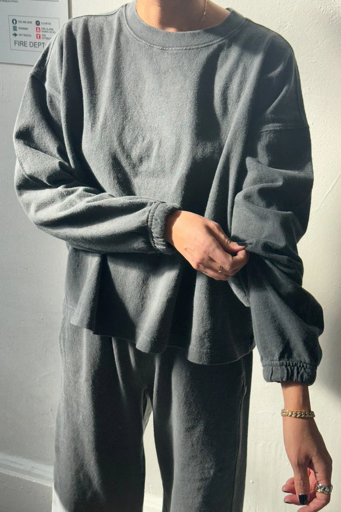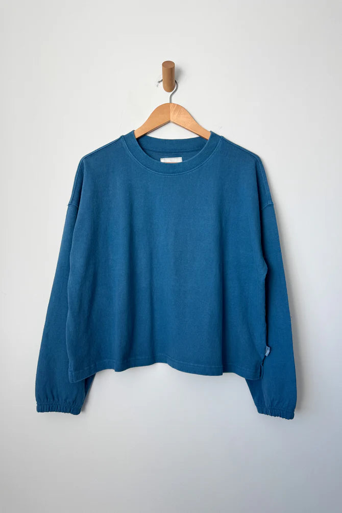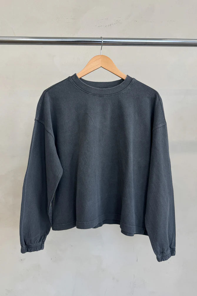 Le Bon Shoppe dreamed this beauty up while searching high and low for a simple crew neck long sleeve with a feminine touch that can be a year round closet fave. She has a slightly boxy fit, sits right at the hip and features an elastic ruched sleeve opening that creates a slight balloon sleeve effect worn down and scrunches up beautifully.