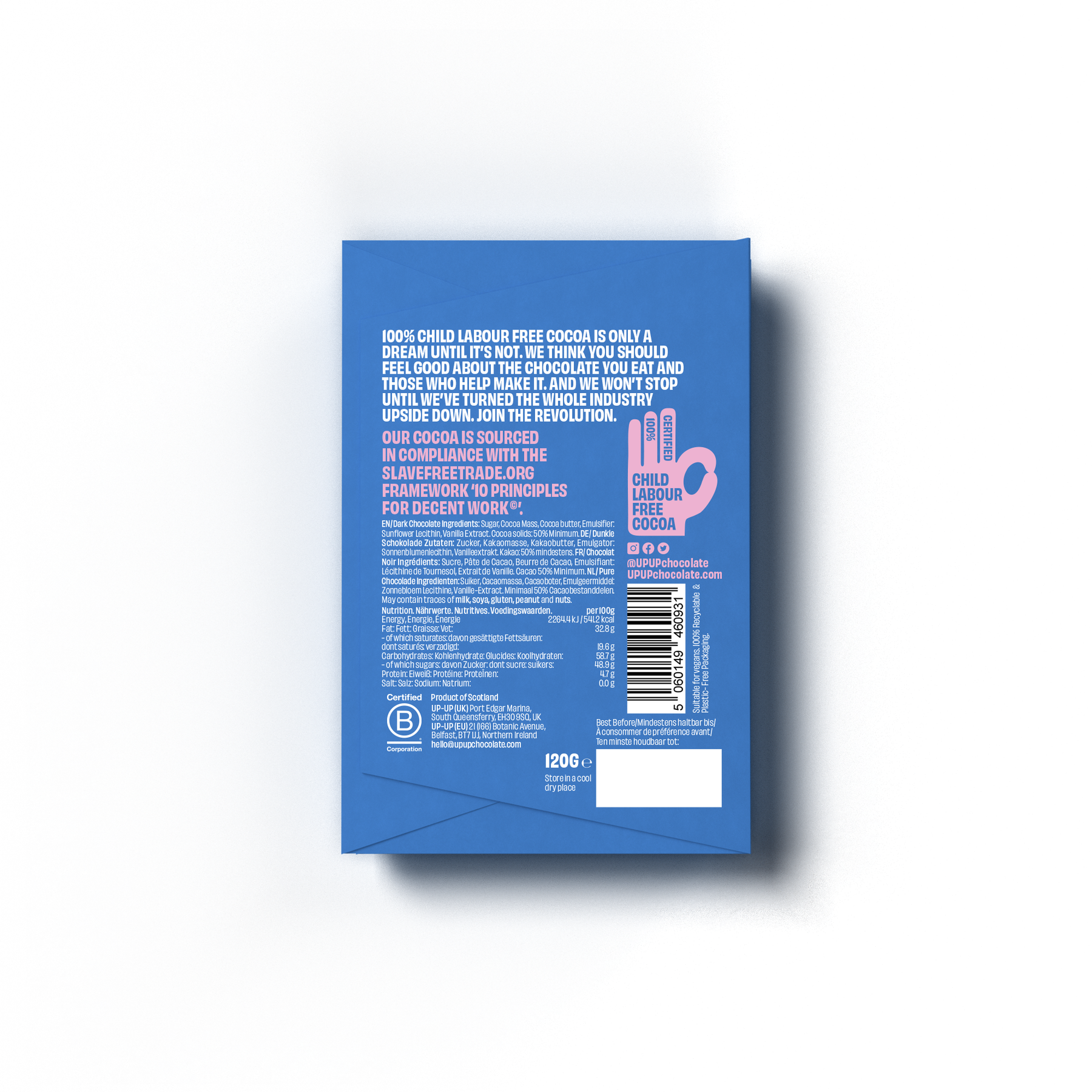 50% Dark Chocolate Chocolate. Single-estate. 100% Tracable chocolate.