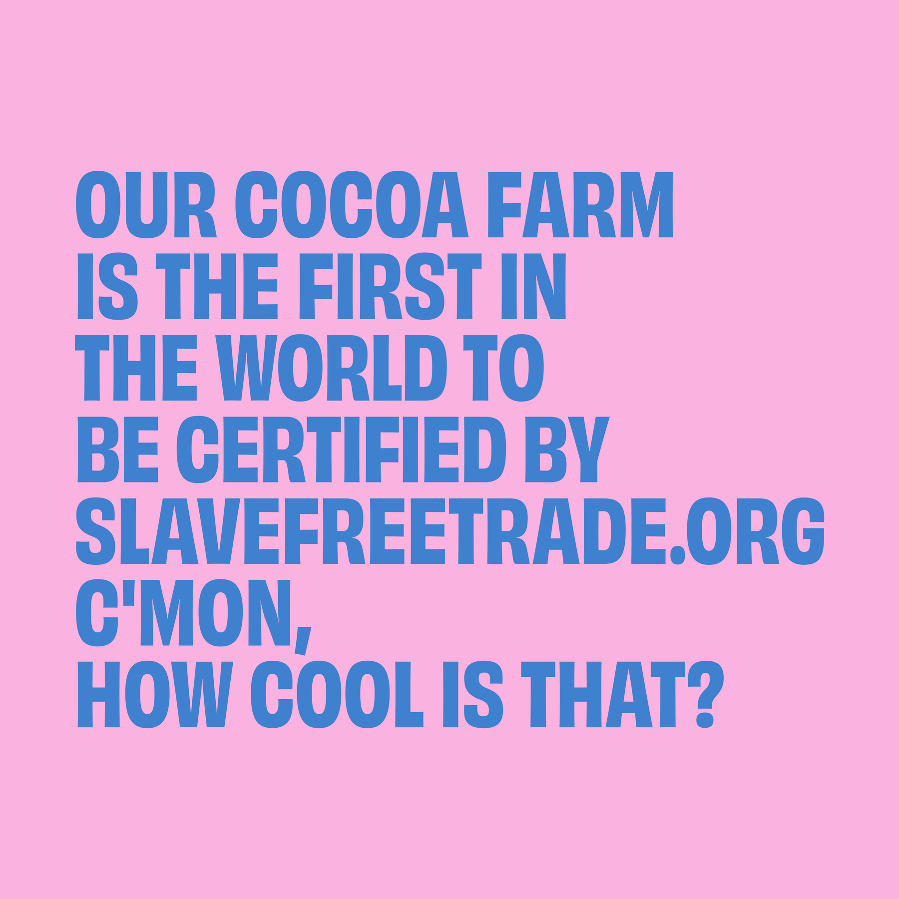 Up-Up cocoa farm is the first in the world to be certified by slavefreetrade.org