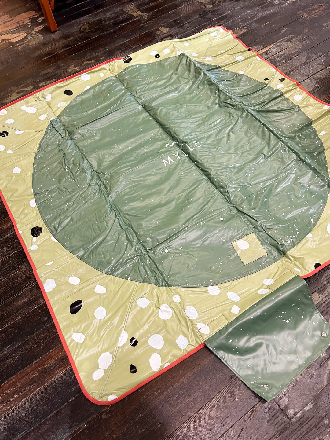 Some companies claim that their inflatable pools are recyclable (or even compostable), but that is not actually so great. Most plastics never end up being recycled, and those that are still create quite a bit of waste in the process. So Mylle has been taking back pools their customers no longer want to keep them out of landfills, with the dream of one day turning them into something beautiful to continue their use.