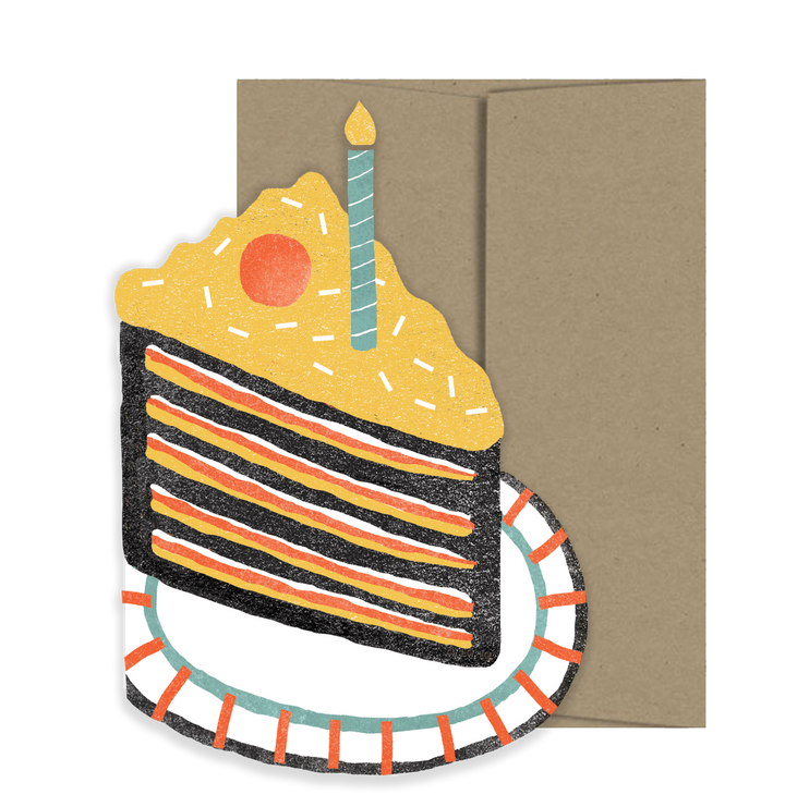 Happy birthday card! A yummy piece of cake and a candle to blow.