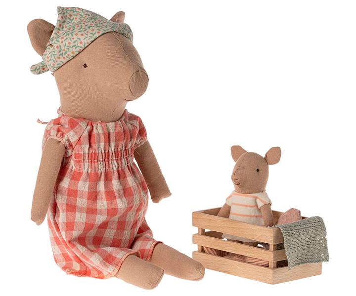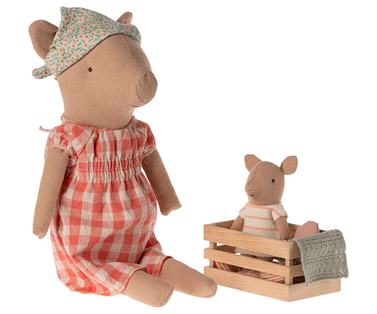 Oink Oink - say hello to the sweetest pig. This pig comes in a beautiful dress and scarf and can sit on its own. Create your own pig family by adding more family members from the collection.