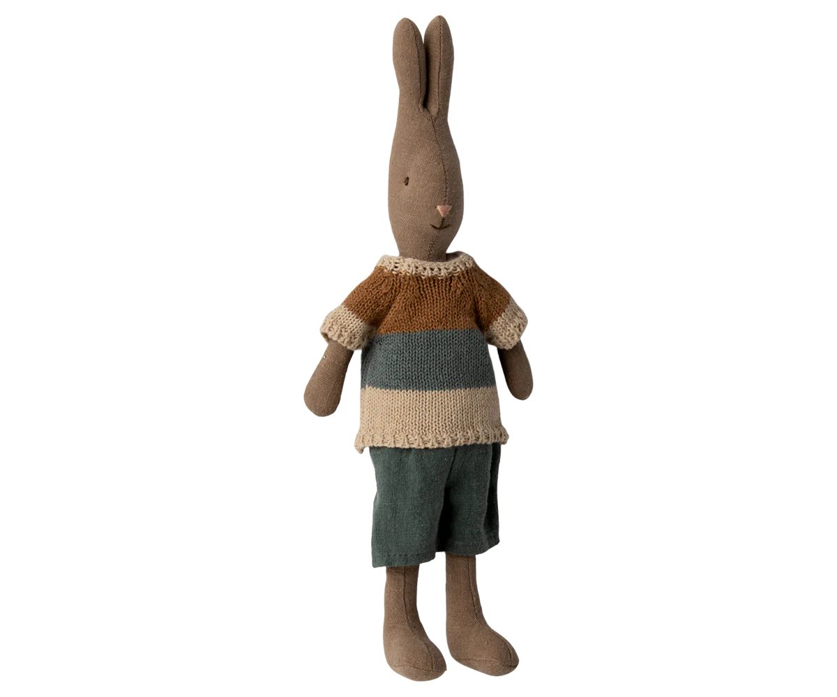 A classic rabbit made of soft natural fabrics that gives a lovely hand feel and look. Size 2 rabbit fits into the House of miniature and all furniture size mini and miniature. Check out the clothes collection to expand the rabbit's wardrobe.