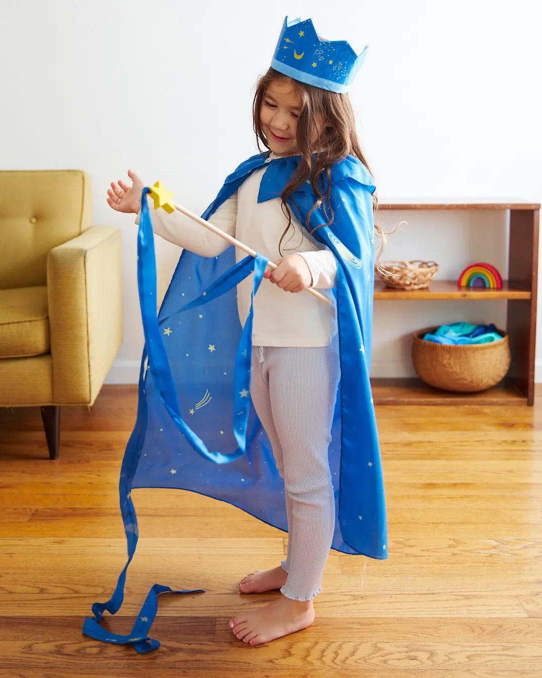 Silk Crowns are shiny, beautiful, and fit comfortably! The elastic back allows them to stretch to fit most head sizes. Hand-painted on luminously textured jacquard silk in vibrant, playful colorways. Little ones with sensory needs love the soft, lightweight tactile experience that silk provides. Children will love incorporating crowns into daily dress-up and imaginative play, plus they're perfect for birthdays and other celebrations! Dress-up play is the work of the child, and children benefit cognitively, physically, socially, and emotionally through this work. Open-ended play allows children to express their imagination and support their independence.