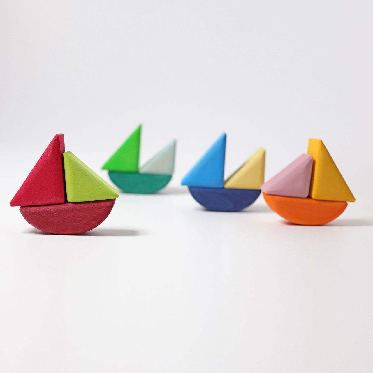Wonderful for small children to stack and combine or sort colors, play with the boats and also for building. Choose from red, green, yellow, or blue color combos.