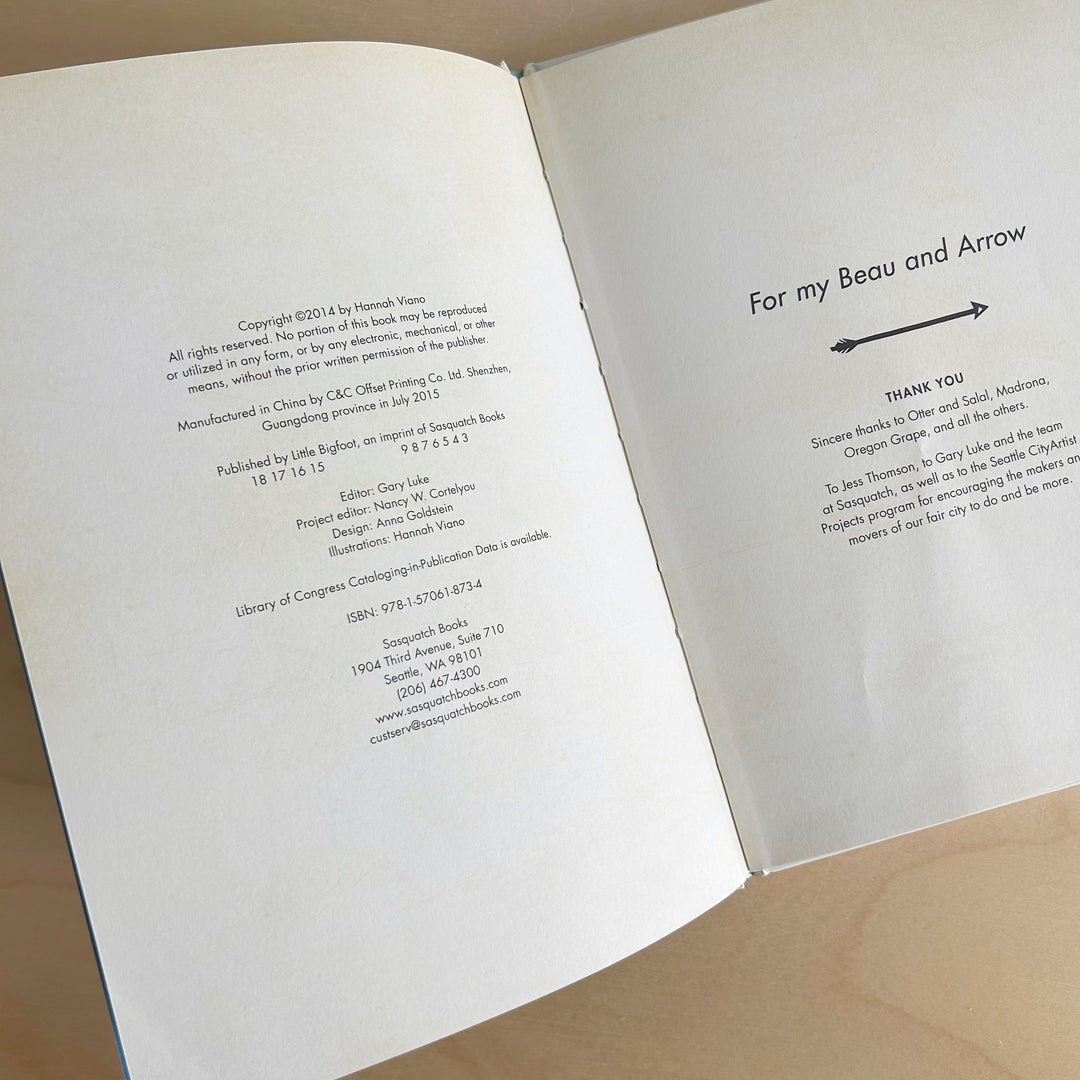 Nature is on full display in this beautiful ABC book: C is for Crab; D is for Douglas fir; and E is for Eagle. Based on Pacific Northwest artist Hannah Viano’s regionally themed paper-cut art of the region's wildlife and nature, this lovely children’s book features fascinating plants and animals, shedding new light on learning the ABCs that will appeal to young and old alike. Fans of Nikki McClure and Kate Endle will appreciate the beautiful handmade appeal of this book.