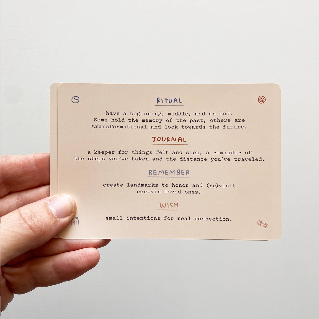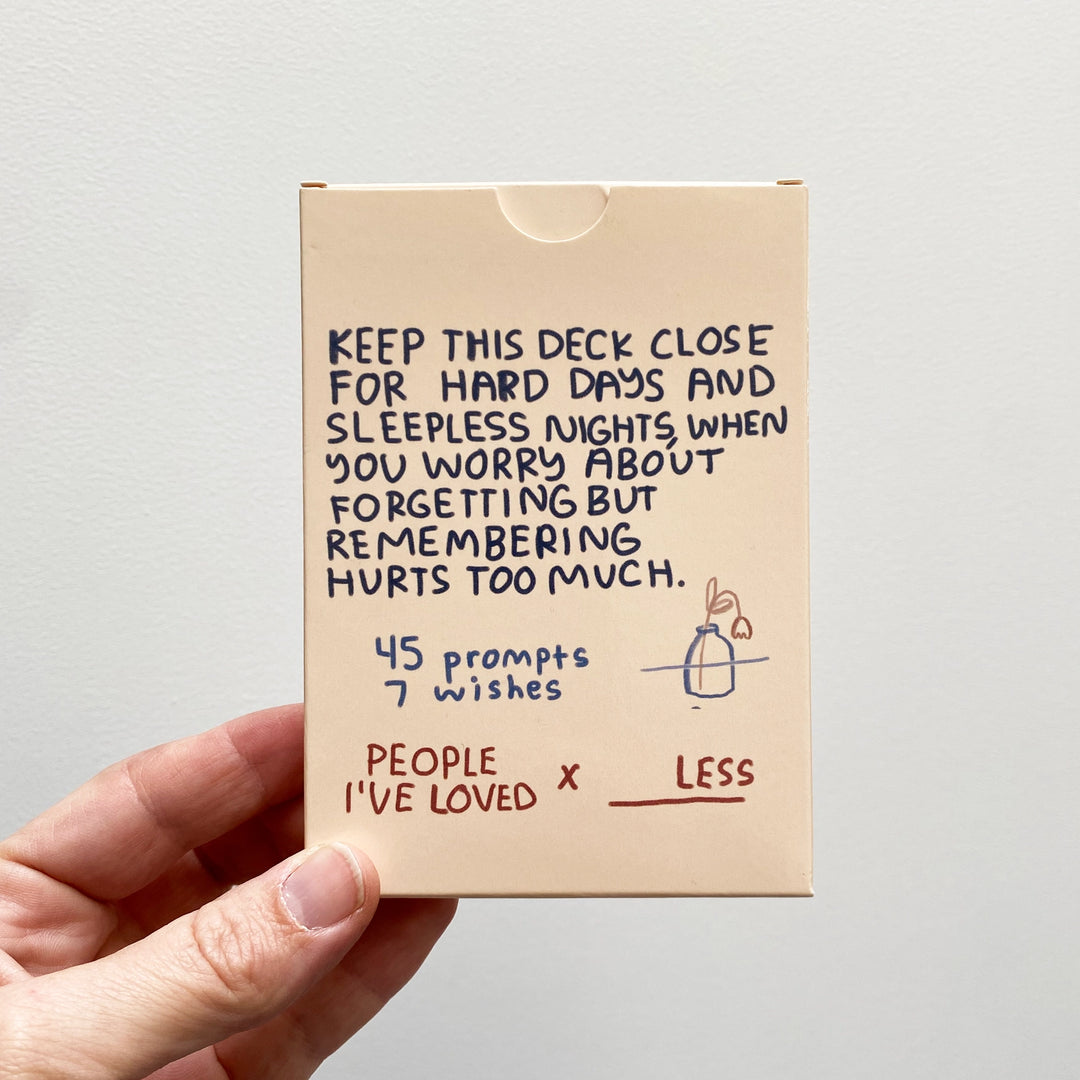 People I've Loved collaborated with Madeline Park and Marcella Biven of ______ LESS journal on a deck designed to help you process grief and mourning—at your own pace. This time of year (or any time really), can be filled with joy, but also the pain of missing people in our lives who we have lost. The holidays tend to bring it ALL to the surface.