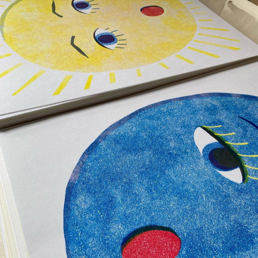 The print has vibrant colors and beautiful textures created by the riso* technique.
