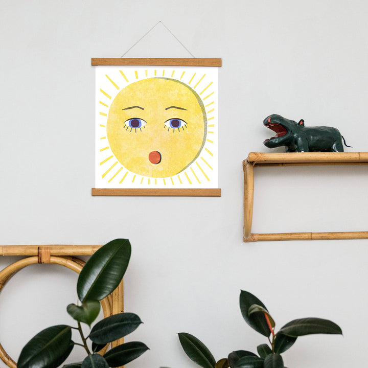 Soleil, is the illustration of a surprised sun, a cheerful poster perfect to bring a little poetry to a bedroom.