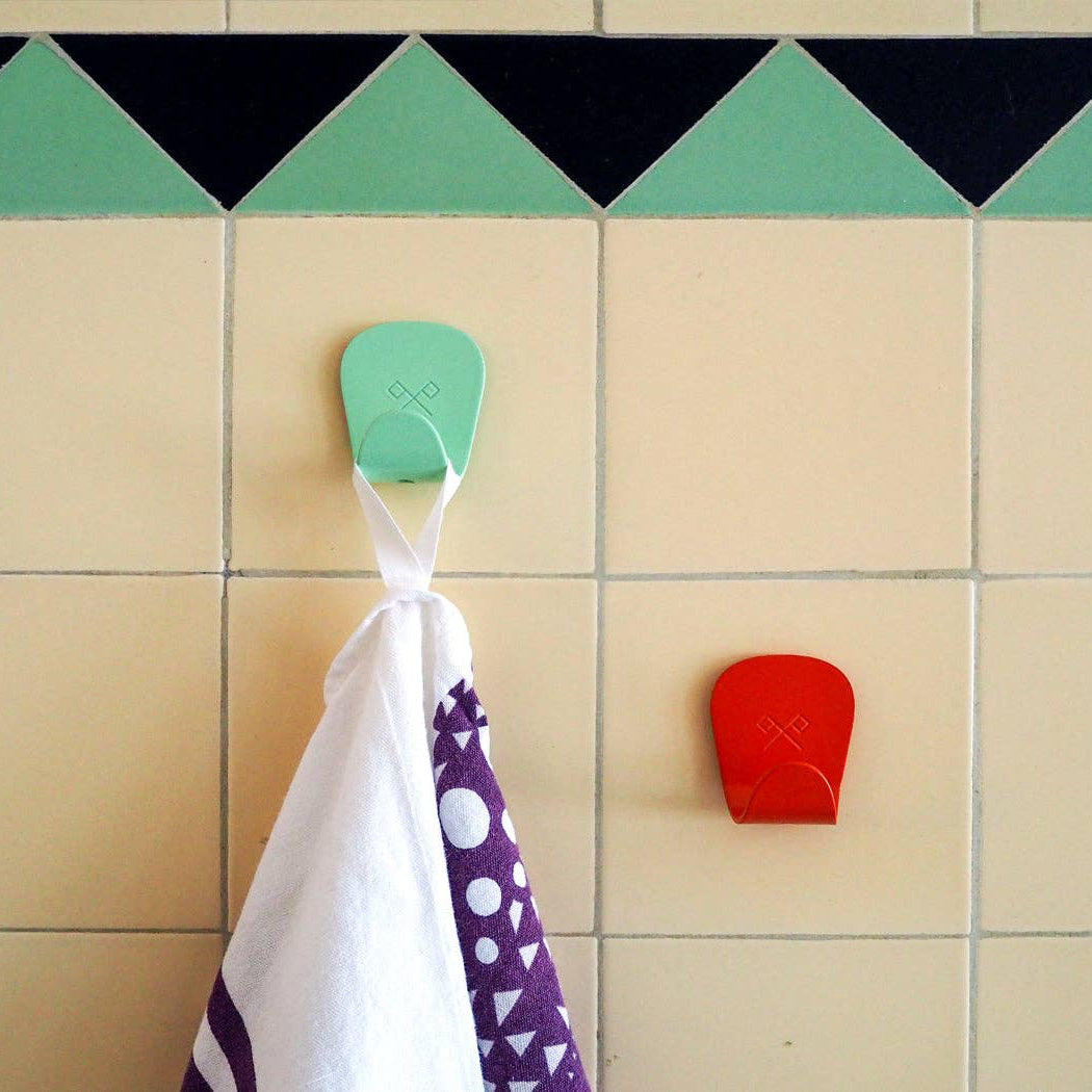 The Scout Regalia Anywhere Hook is a light duty, self-adhesive, semi-permanent wall hook that doesn’t require tools for installation. Made of powder coated aluminum for durable everyday use, indoors or outdoors.