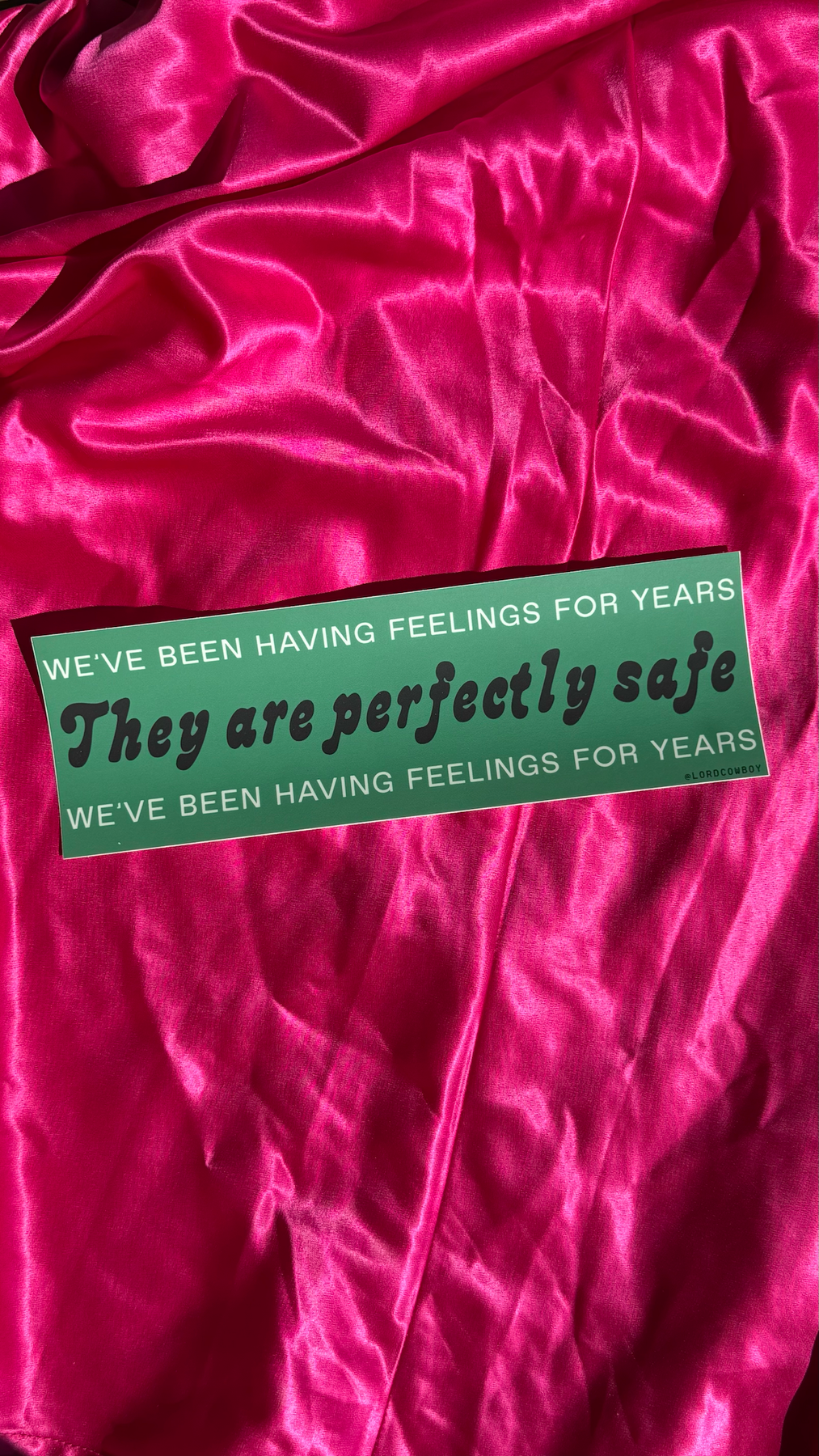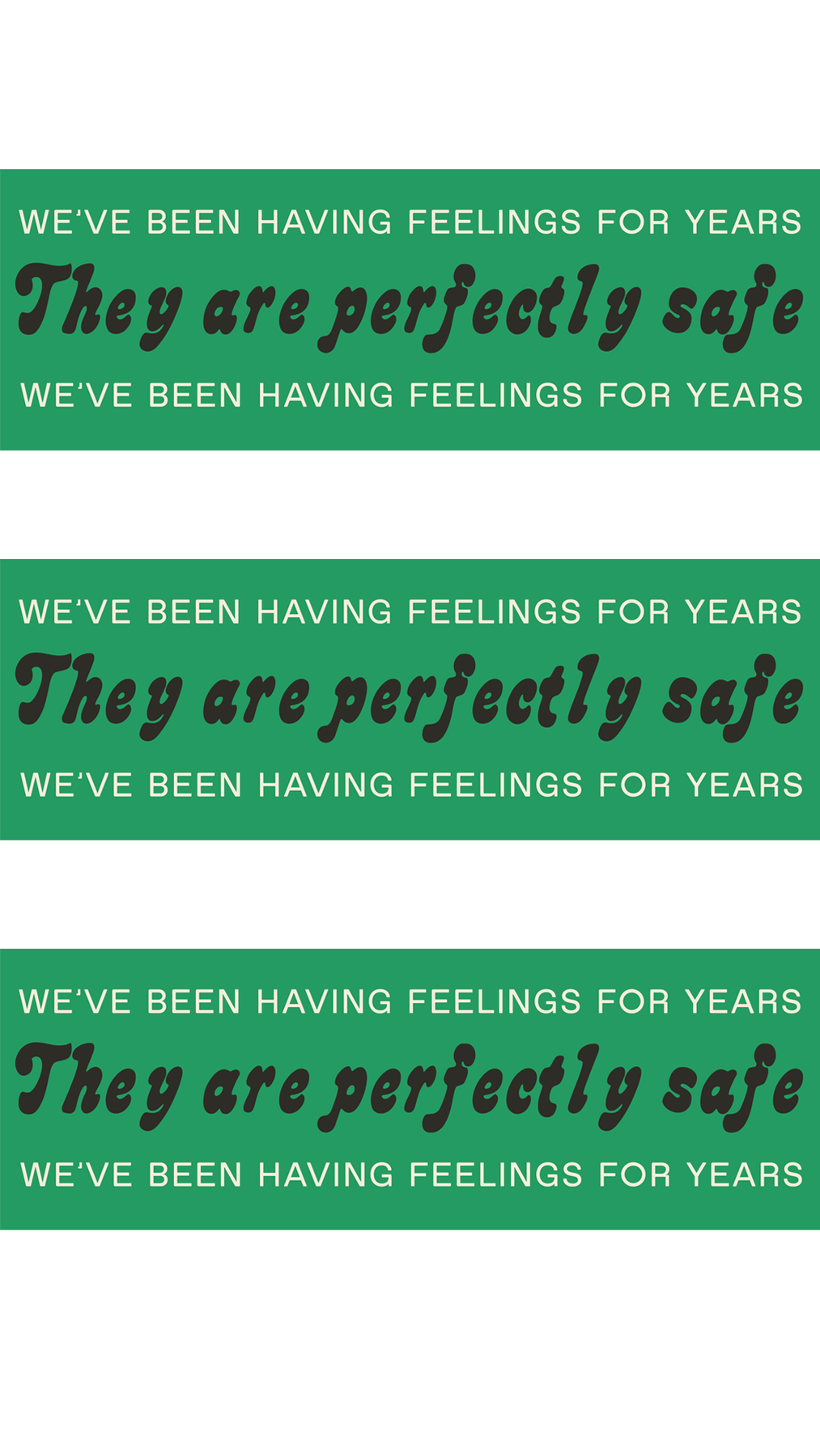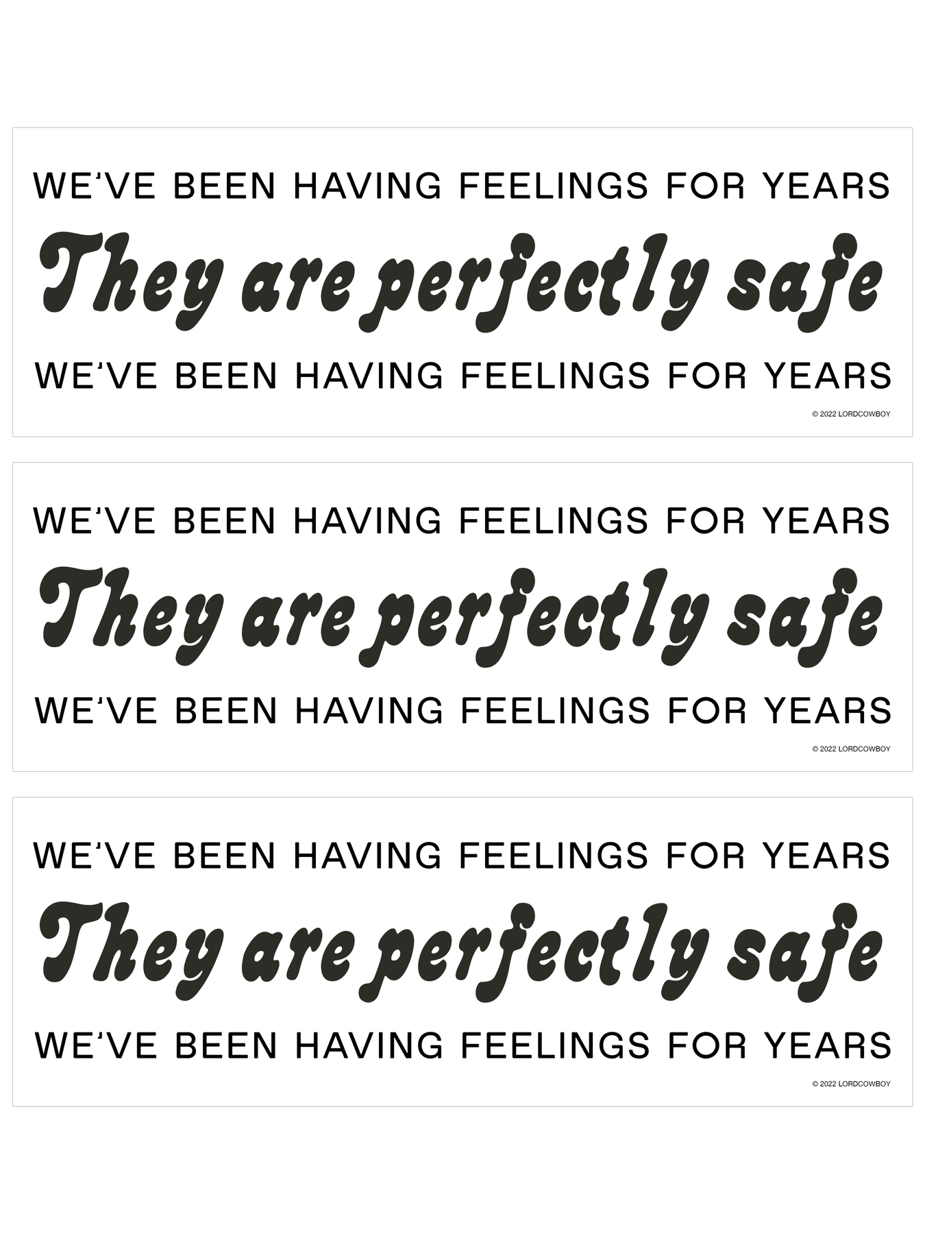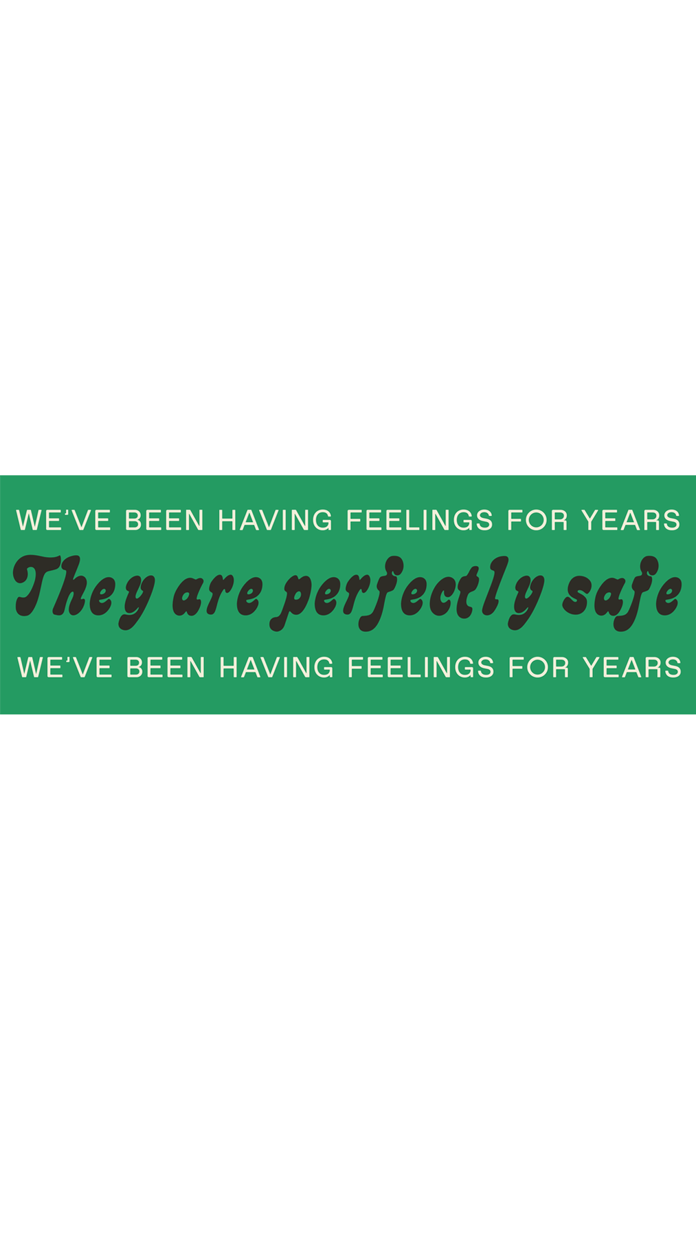 We've been having feelings for years: They are perfectly safe. Available in black & white (vinyl sticker with glossy finish) or black & green (matte and smooth finish). Measures 8.5” x 2.75”