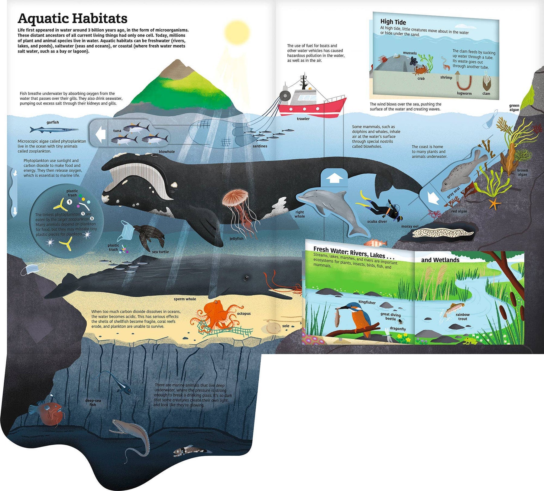 Discover the fascinating world of water! From a tiny drop to an enormous ocean, one of Earth's most important natural resources flows over land and underground, forms icebergs, and is even found in the air. This interactive book provides a comprehensive overview, exploring where water comes from and how it provides for all living things, and more! Readers can find out about the water cycle, dive into the ocean with marine animals, trace how water gets from a lake to our homes and explore ways in which water energy is used in our daily lives.