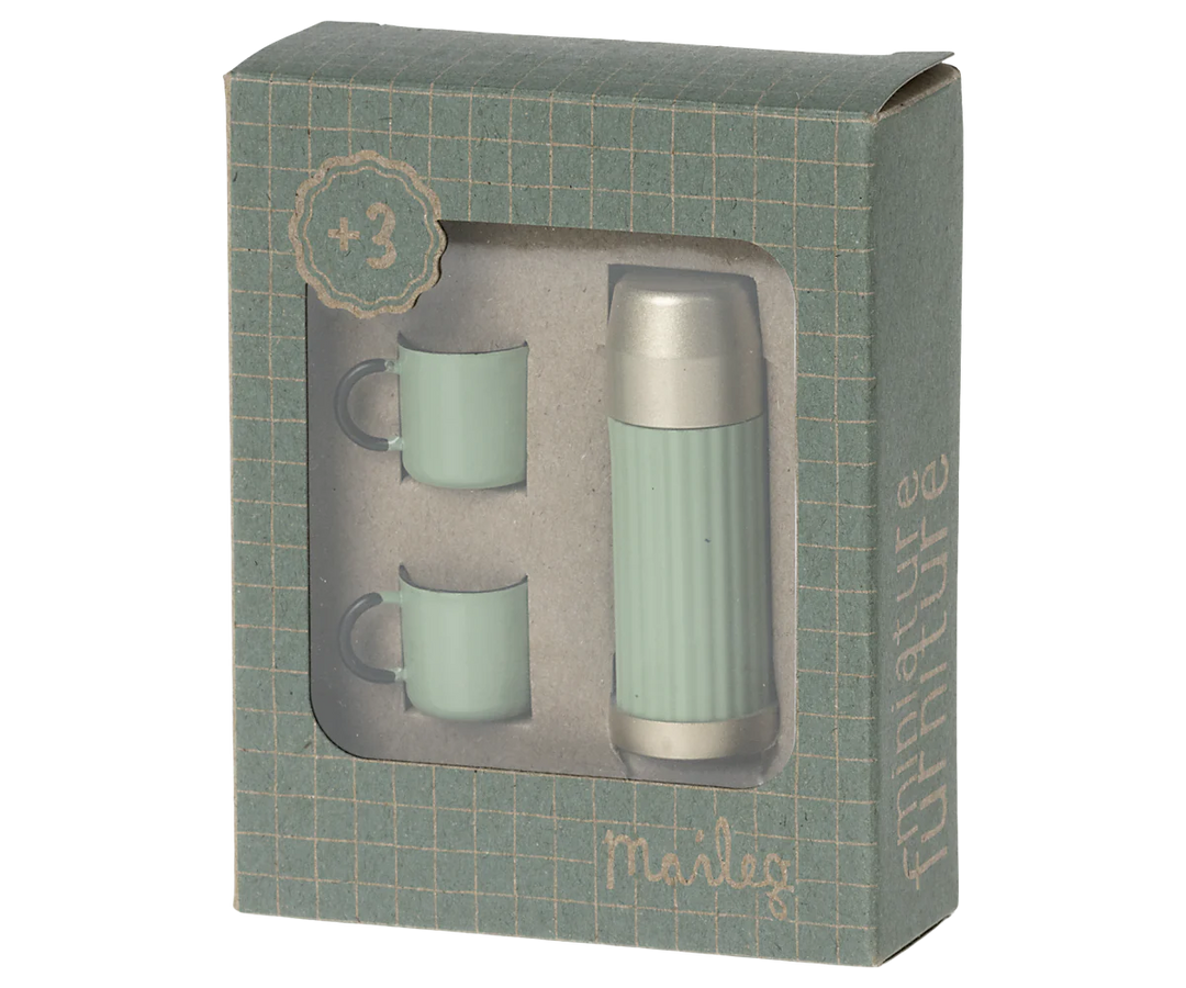 This Maileg thermos and cups are so perfect for our mice! Hiker mice love to enjoy a warm cup of hot chocolate while they're camping and winding down from a long day of adventures. They can even hold the cups and the thermos with their magnetic hands!