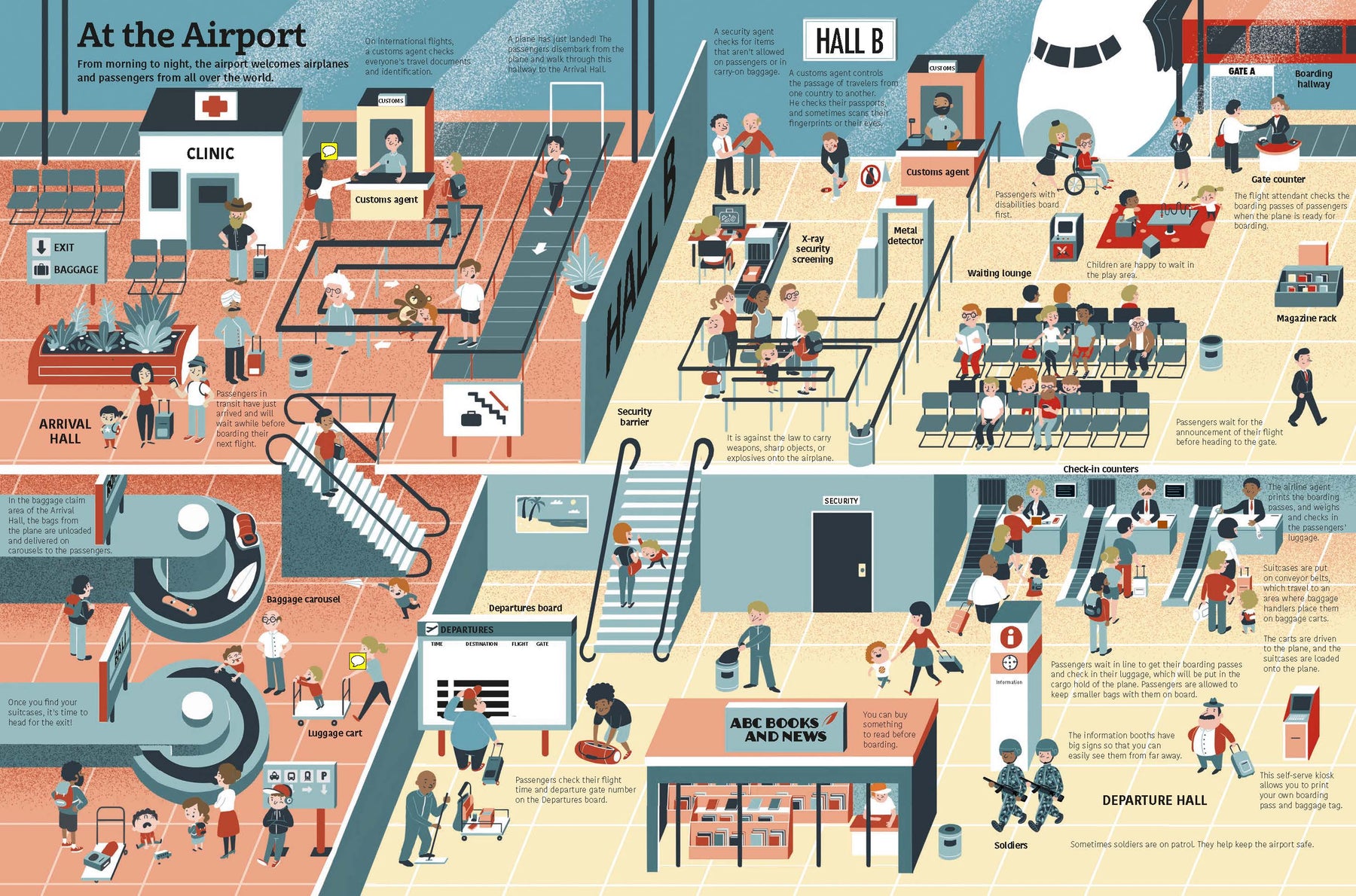 Learn all about airplanes, airports, and the fascinating world of air travel: A passenger jet lands on the runway, a plane is refueled before takeoff... Best of all, lots of flaps, popups, pull-tabs, and rotating wheels bring planes, airports, and travelers to life. Readers will poke into the cockpit of a Boeing 747, explore the innards of a baggage carousel, and help pilots get ready for takeoff.