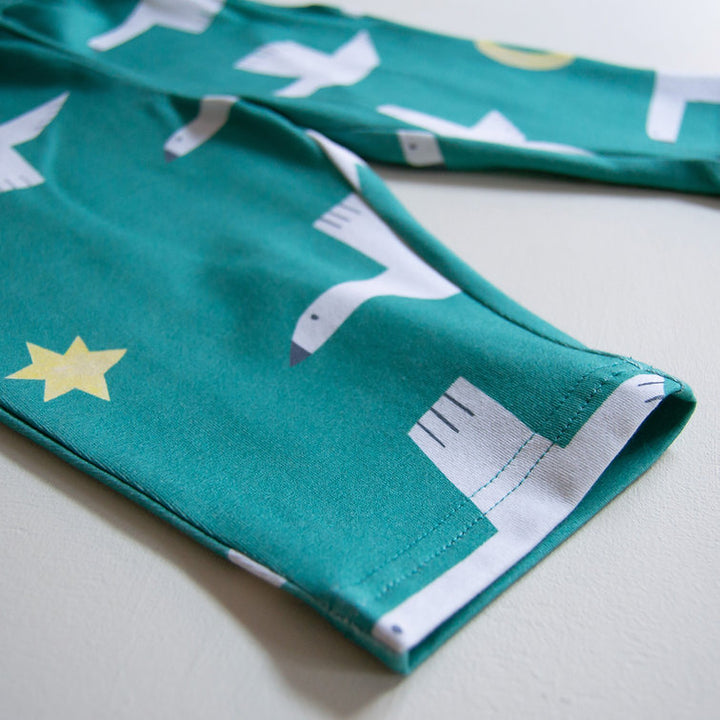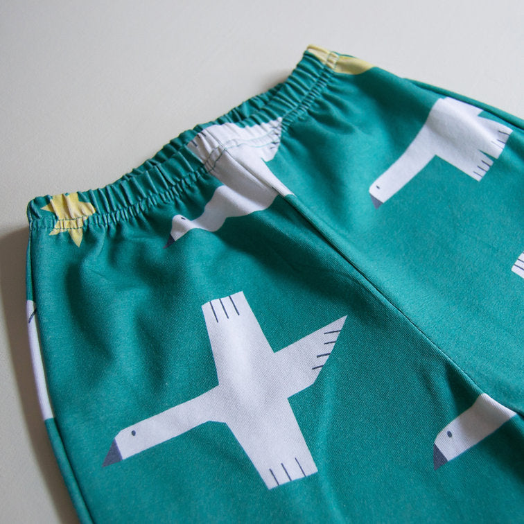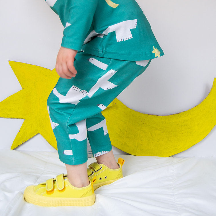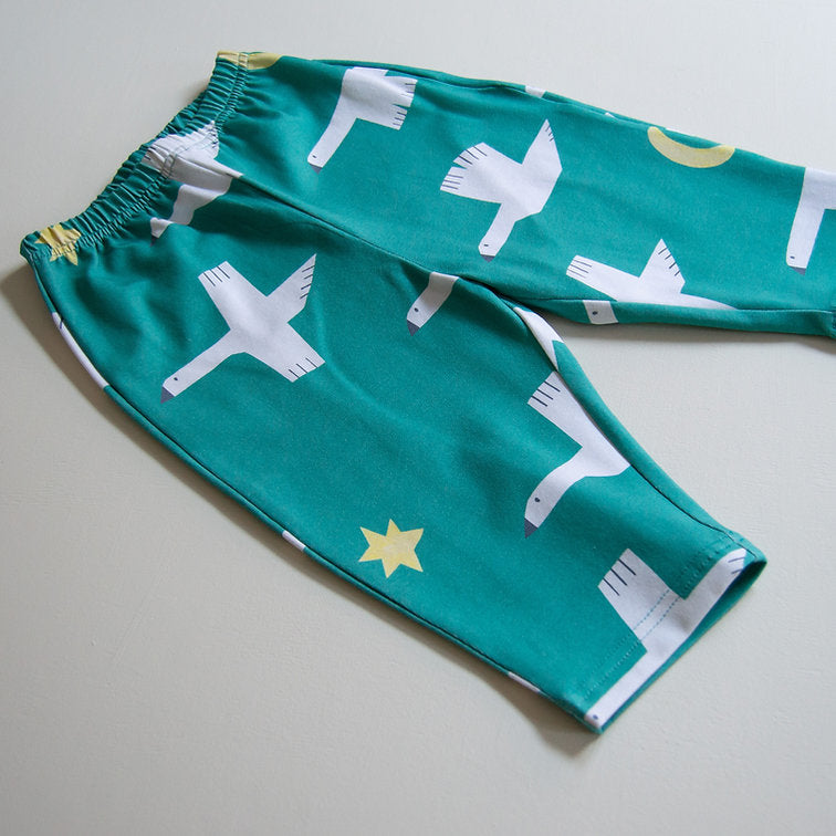 Loose and relaxed fit. Elastic on waist. Made from soft OEKO-TEX standard certified jersey material (free from any harmful chemicals).