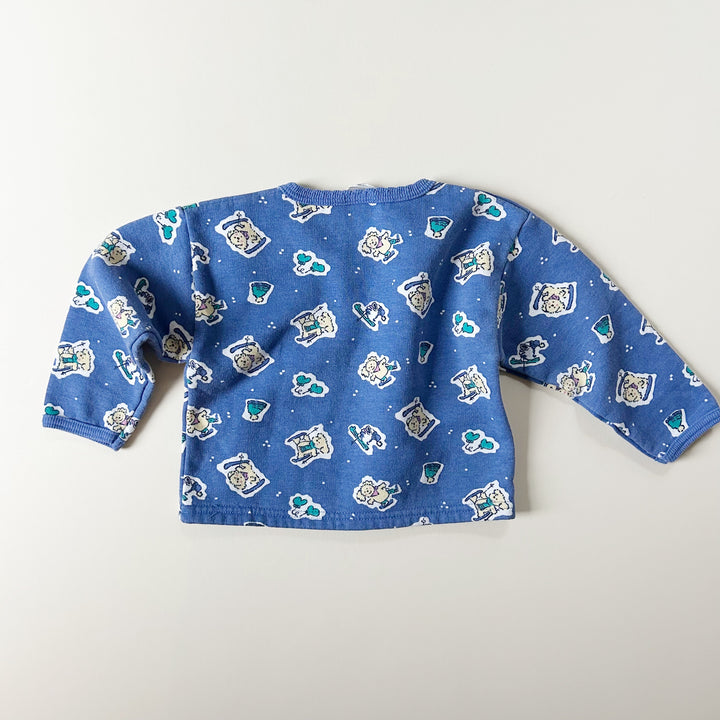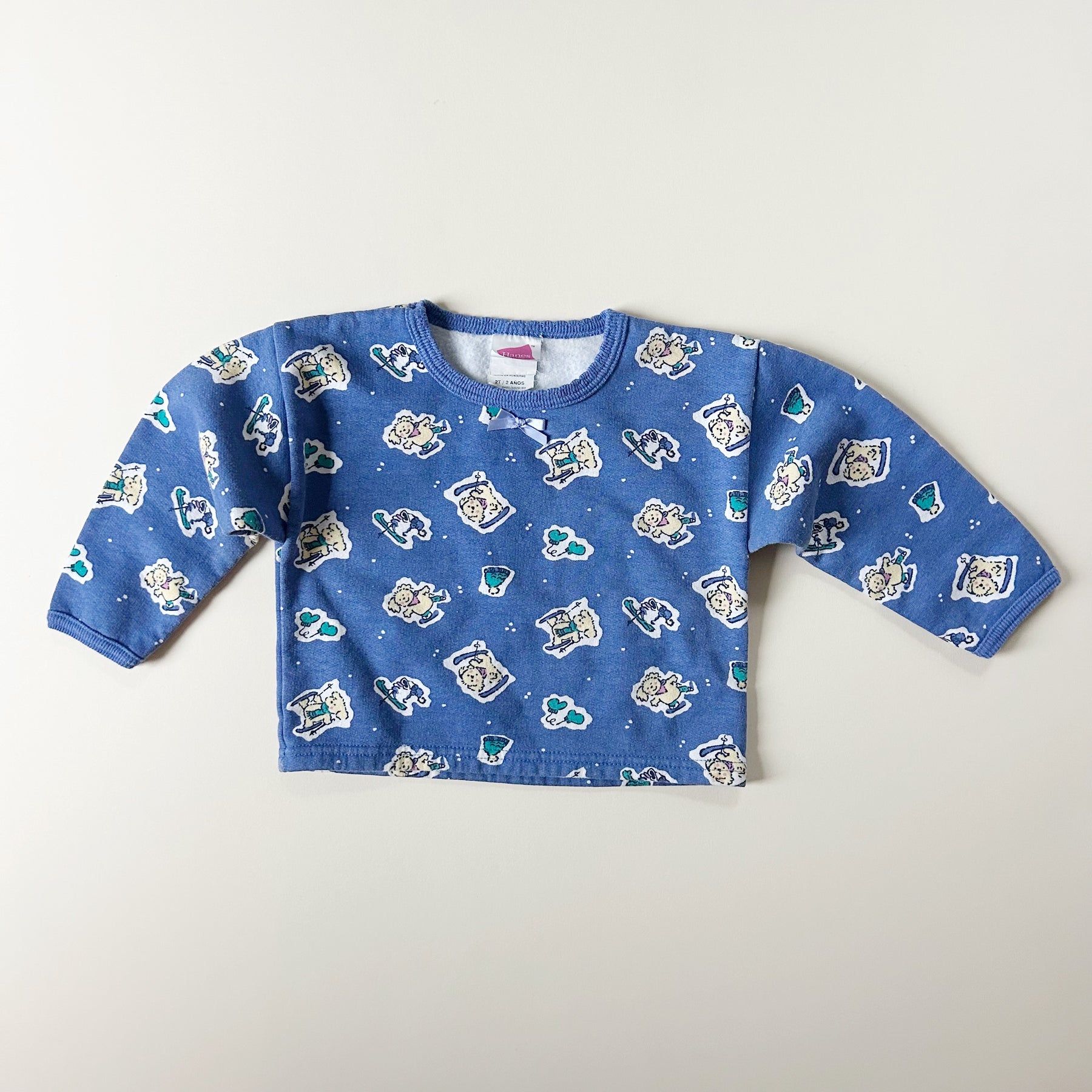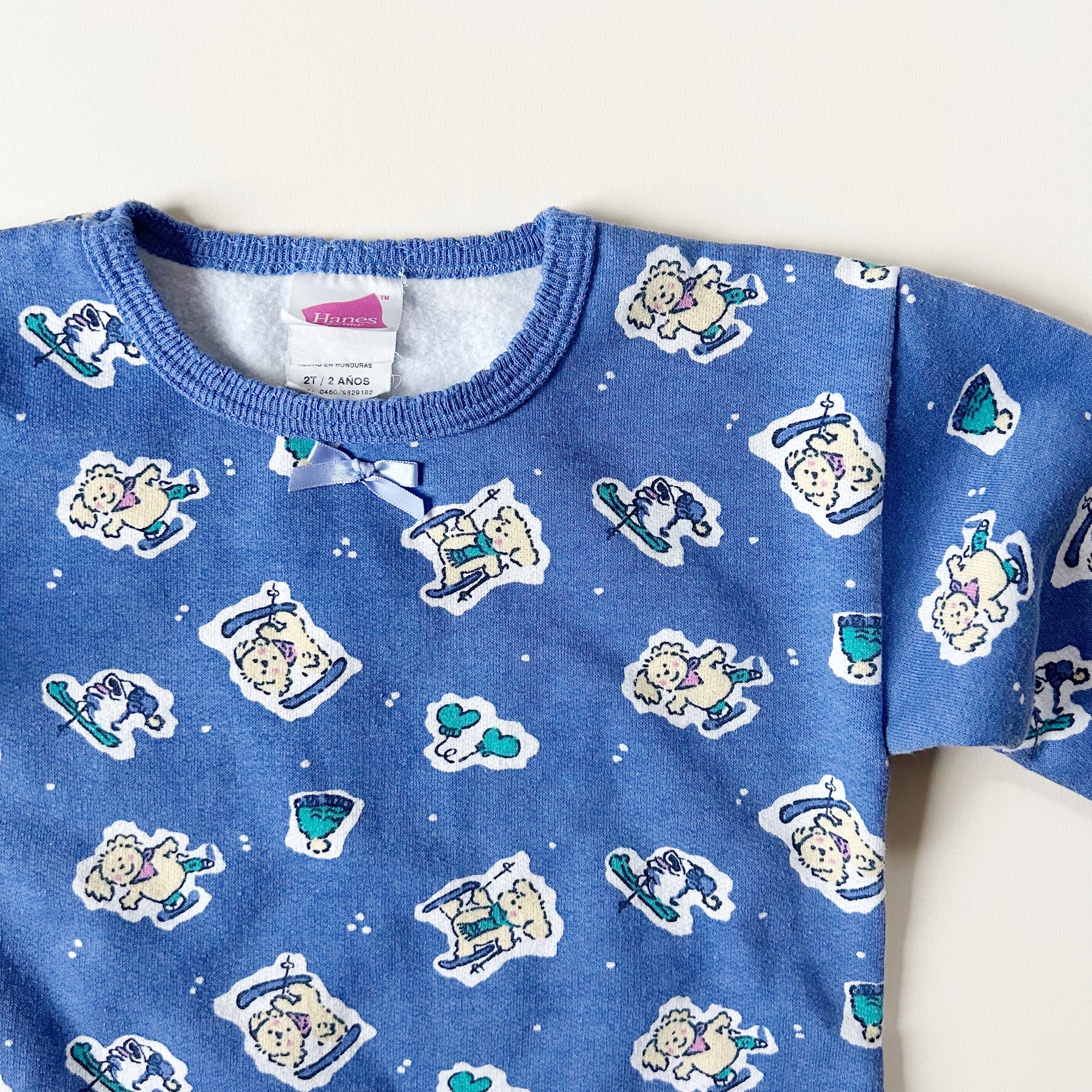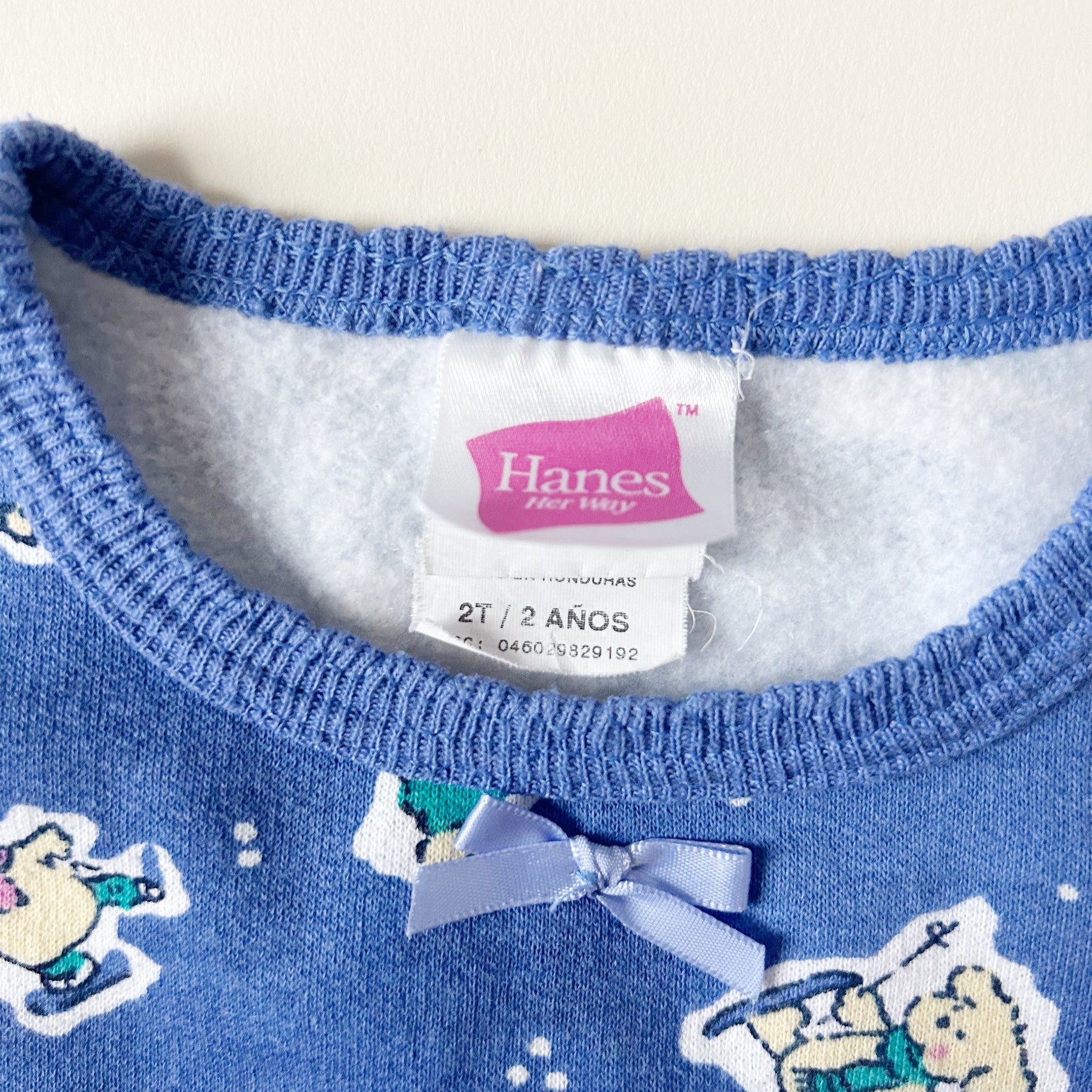 Retro light blue top from Hanes with bear skiing print throughout. Excellent condition with interior still soft. Size 2 but could start at 24 mo -- please see measurements (12" length, 16.5" sleeve length).