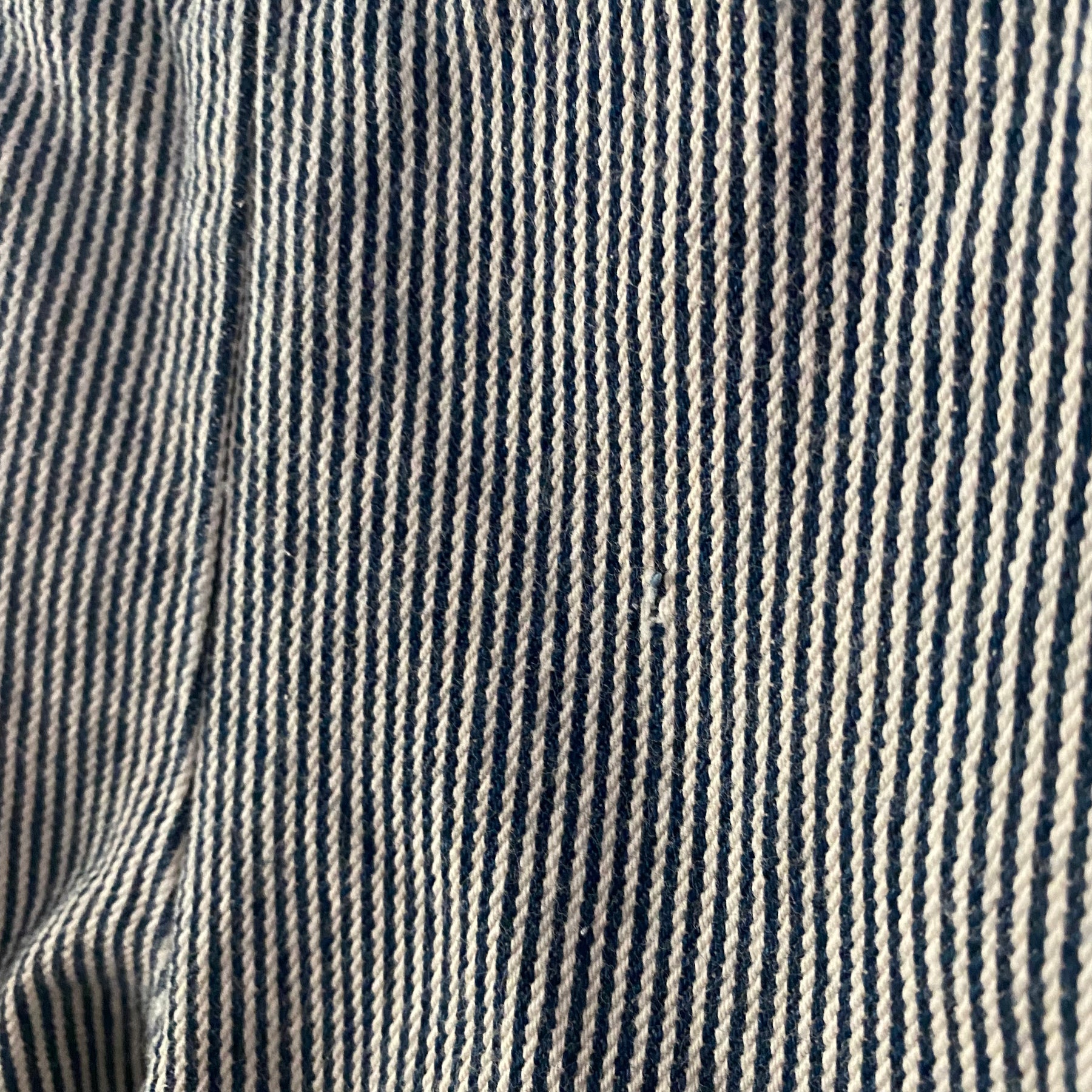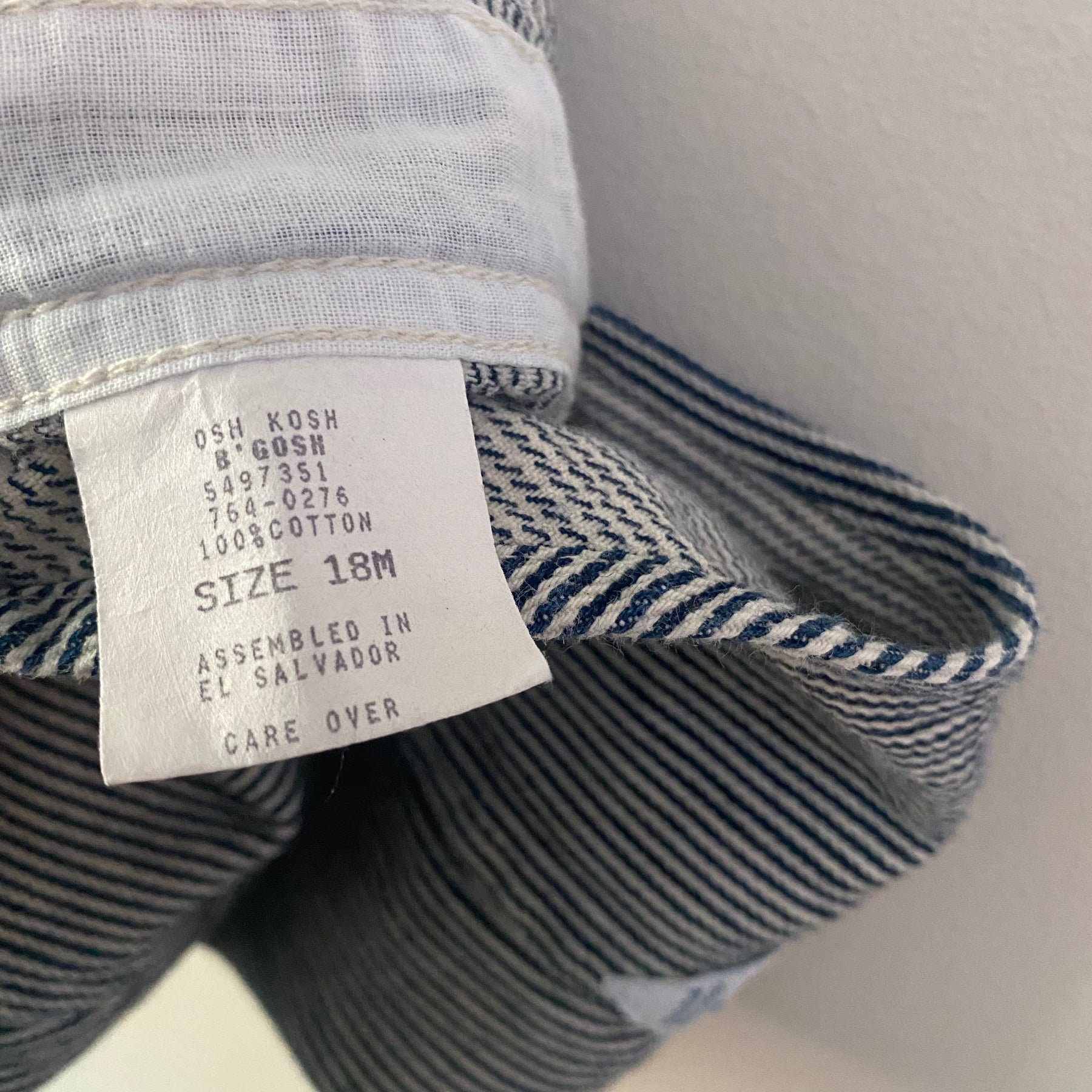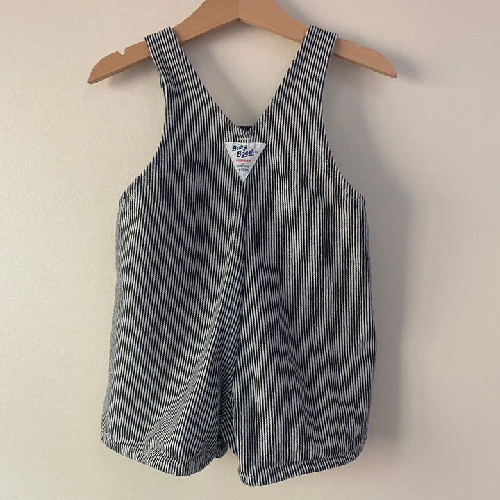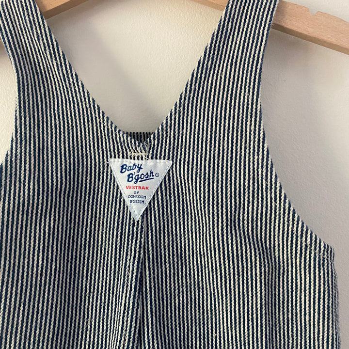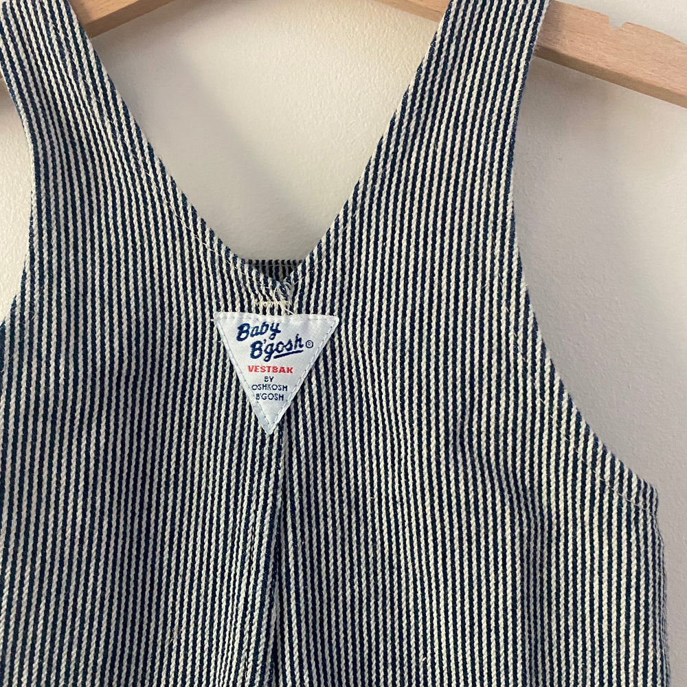 Vintage OshKosh engineer stripe shortall overalls. Size 18 mo (17.5" length at longest). Good vintage condition for some expected wear.