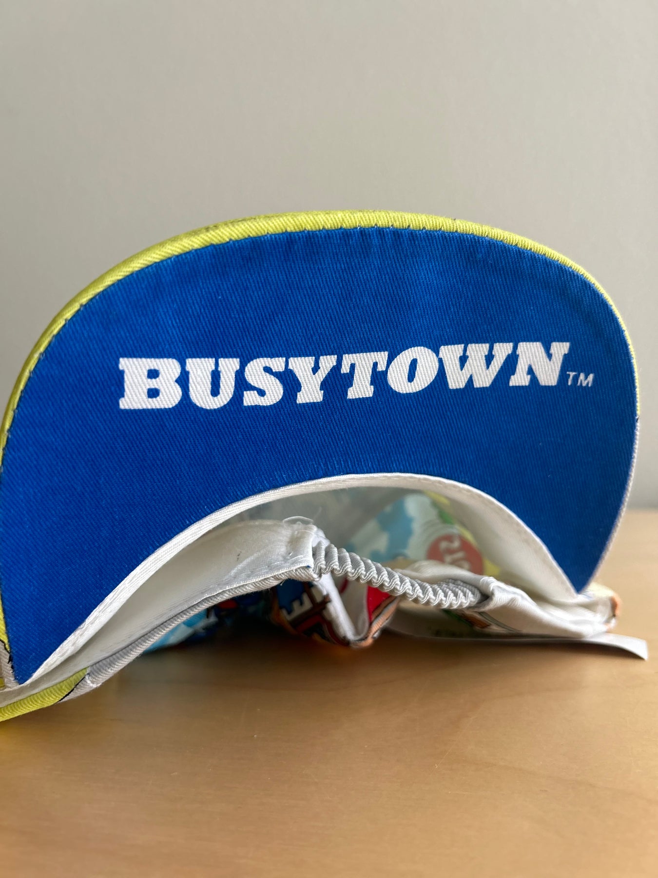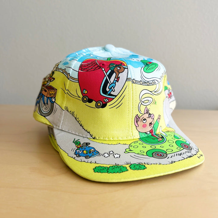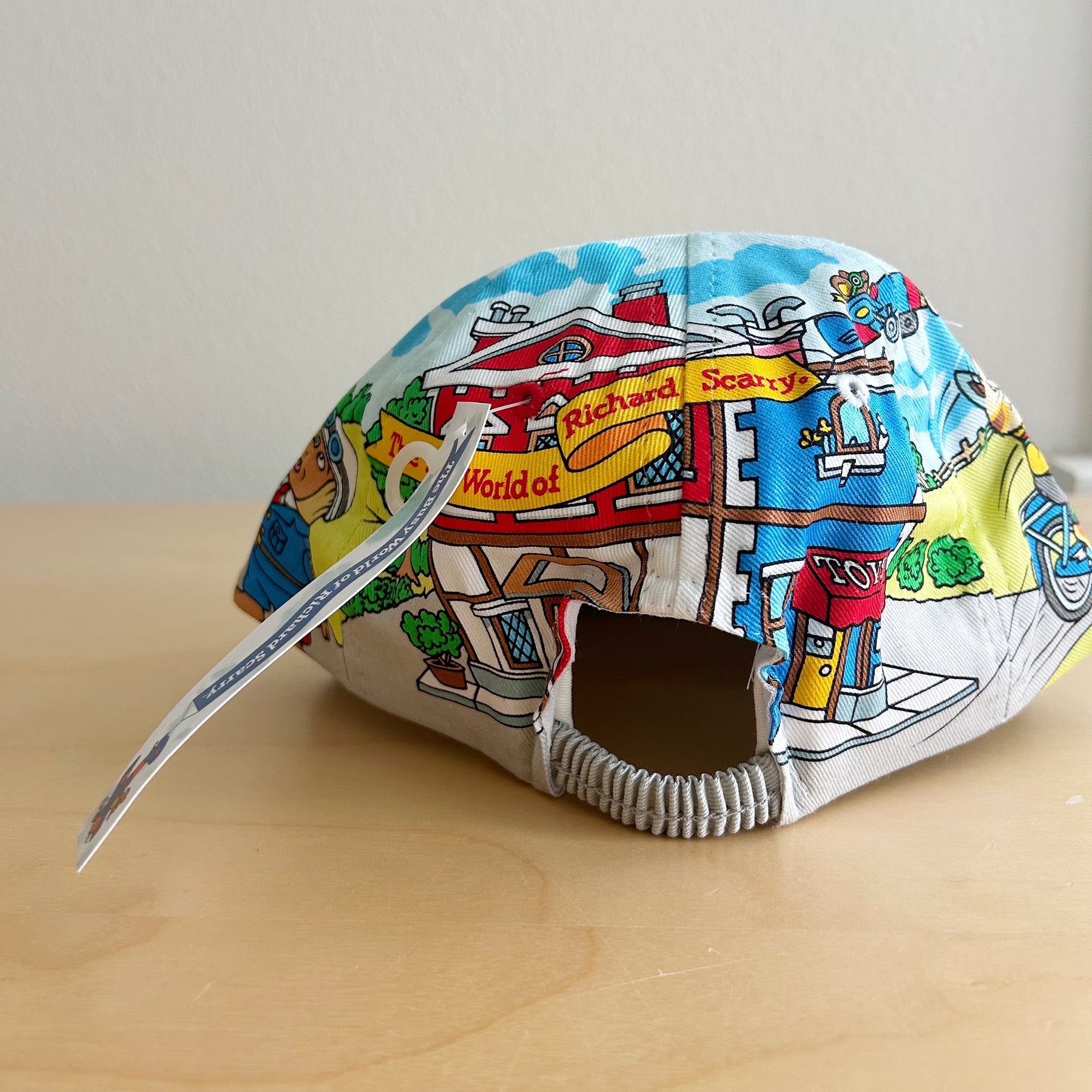 Very fun deadstock cap from the world of Richard Scarry! Richard Scarry illustrated print throughout.