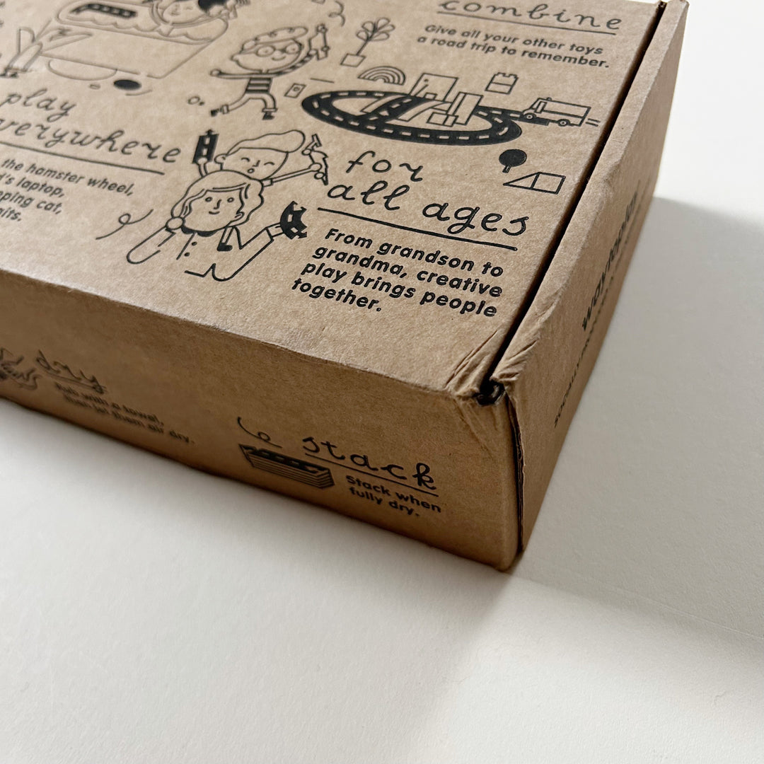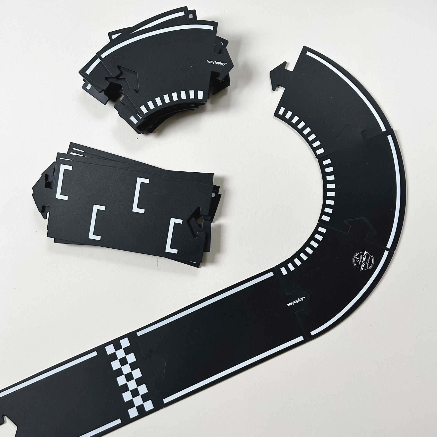 Way2Play Grand Prix road set. 24 specially printed road segments offer maximum racing fun - fully compatible with existing waytoplay sets. Complete set. Good used condition with light wear. Original outer box has small dent but road tracks themselves are in great shape.