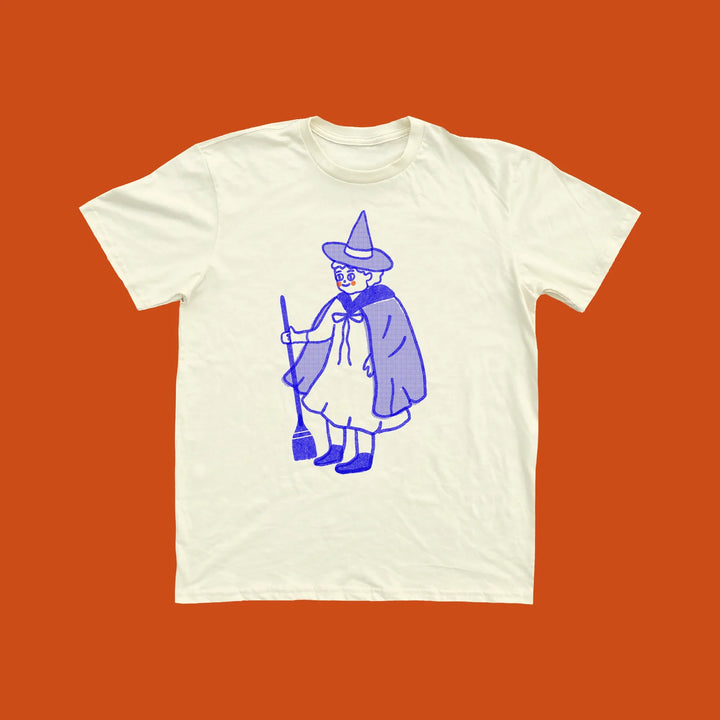A super retro homage to all things Halloween featuring a lovely folk inspired witch who is definitely up to something. This tee has texture and charming off-set registration. Think Risograph meets screen printing.