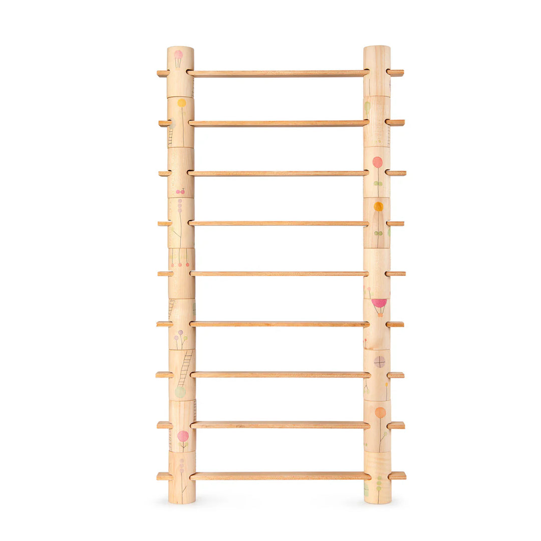 Grapat's endless-play construction set! Build a cozy house in the forest, create a world of your own in a faraway land, or design something completely new. With these beautifully hand-painted wooden blocks and platforms, the possibilities are limitless! It contains: 18 slit tubes and 9 walkways to join the tubes together. The tubes are 70 mm high and the walkways 340mm long.
